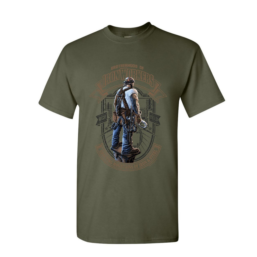 IRONWORKERS - BACKBONE OF AMERICA brotherhood of ironworkers t-shirt blue collar job construction mens tee shirt military green