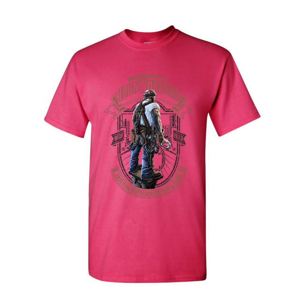IRONWORKERS - BACKBONE OF AMERICA brotherhood of ironworkers t-shirt blue collar job construction mens tee shirt hot pink