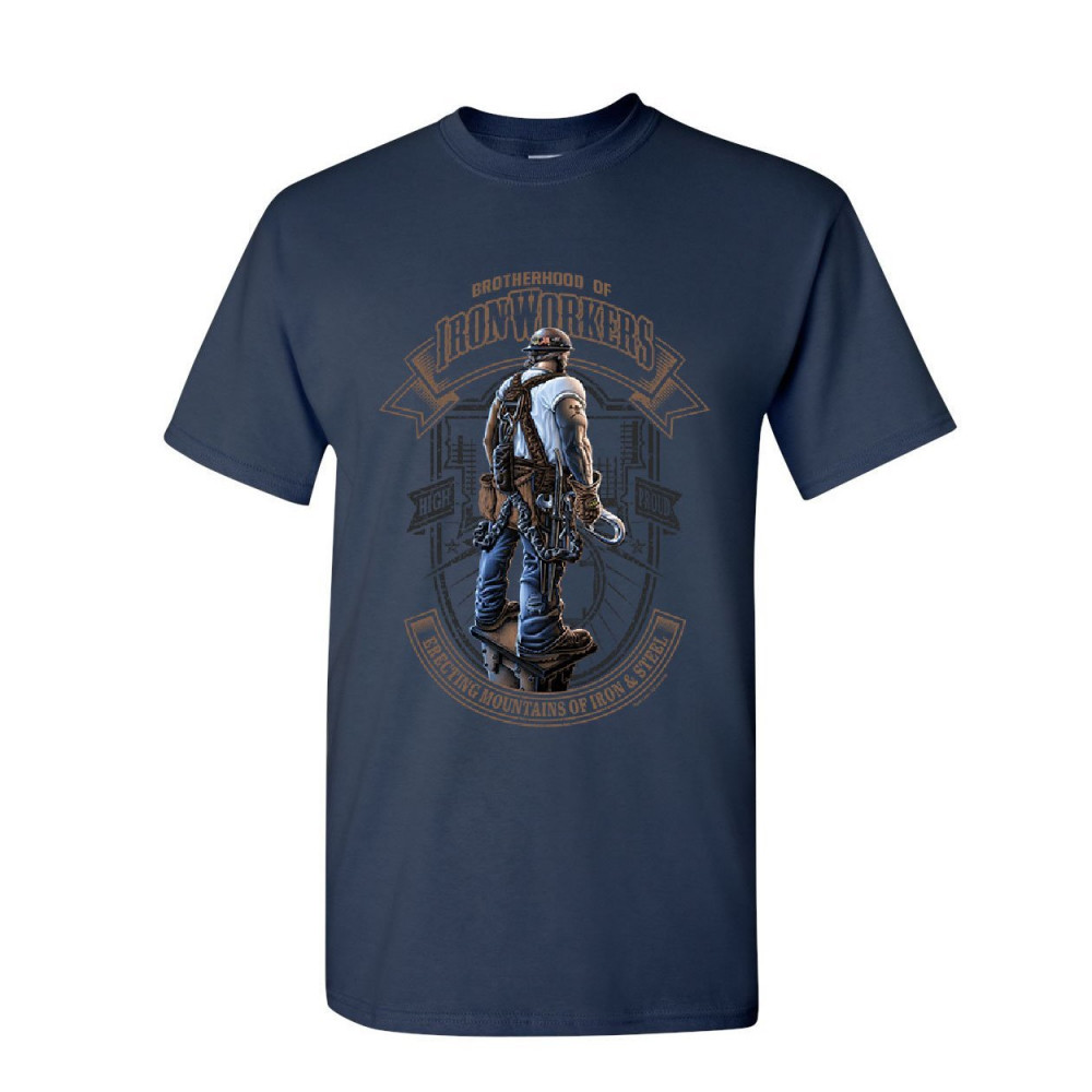 IRONWORKERS - BACKBONE OF AMERICA brotherhood of ironworkers t-shirt blue collar job construction mens tee shirt navy blue