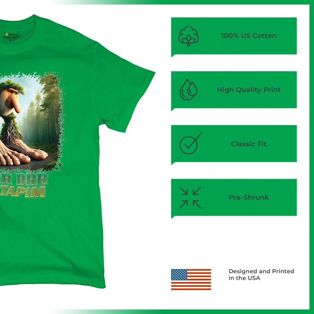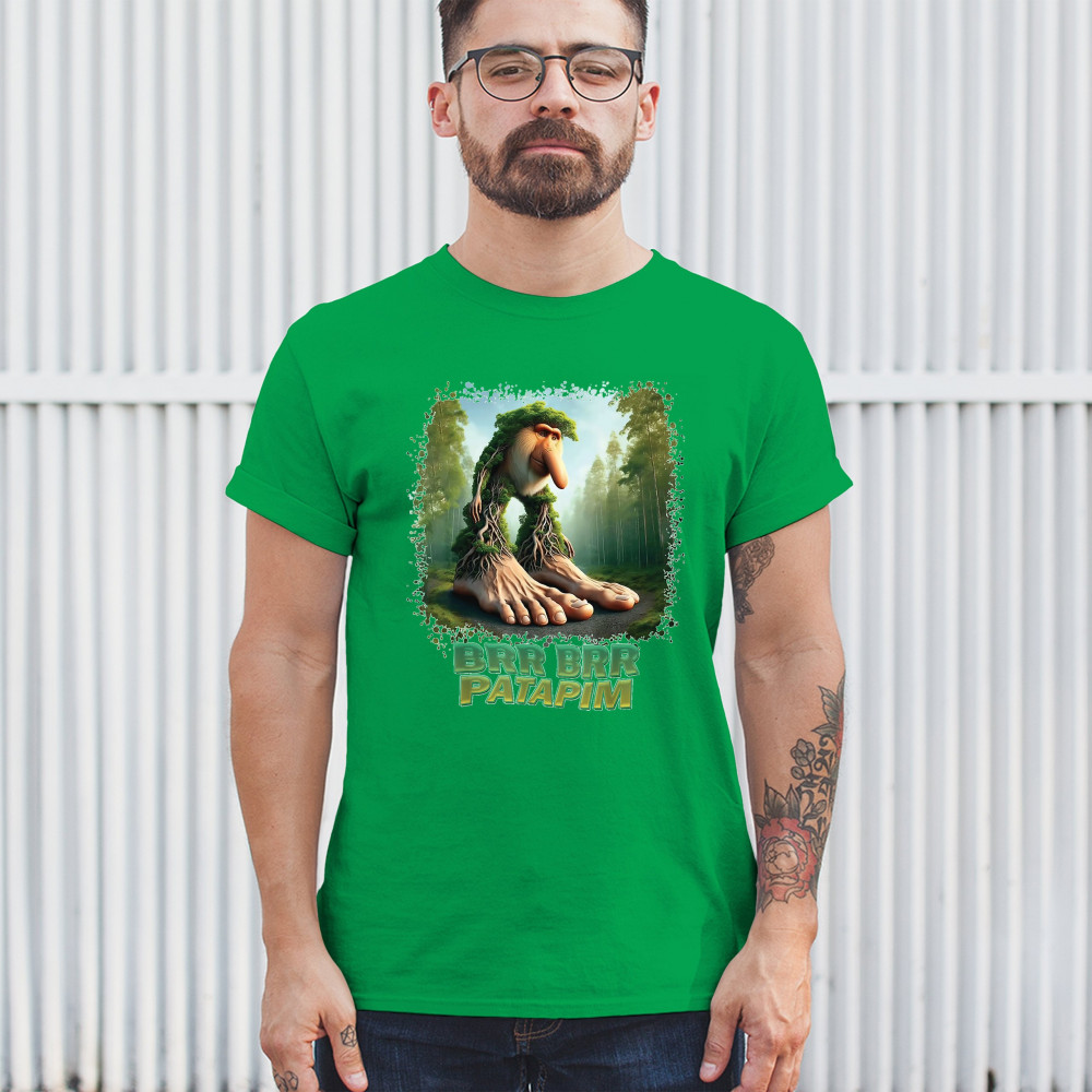 Brr Brr Patapim is forest-core gone full brainrot. Featuring a massive-footed tree-beast with cryptid energy, this design blends cursed meme culture, TikTok humor, weirdcore visuals, and surreal Gen Z fashion. It’s ideal for fans of absurd monster mashups and internet chaos fits.