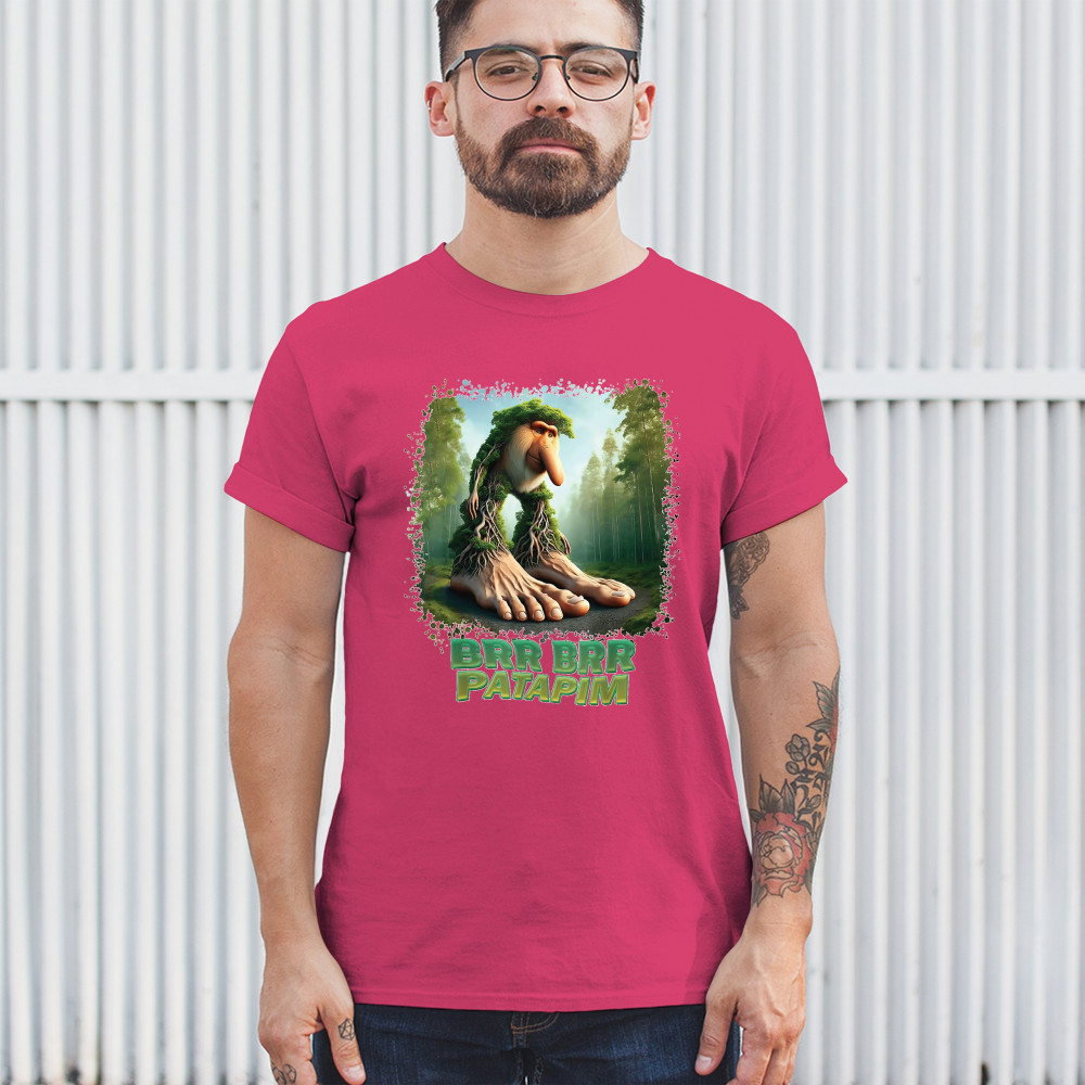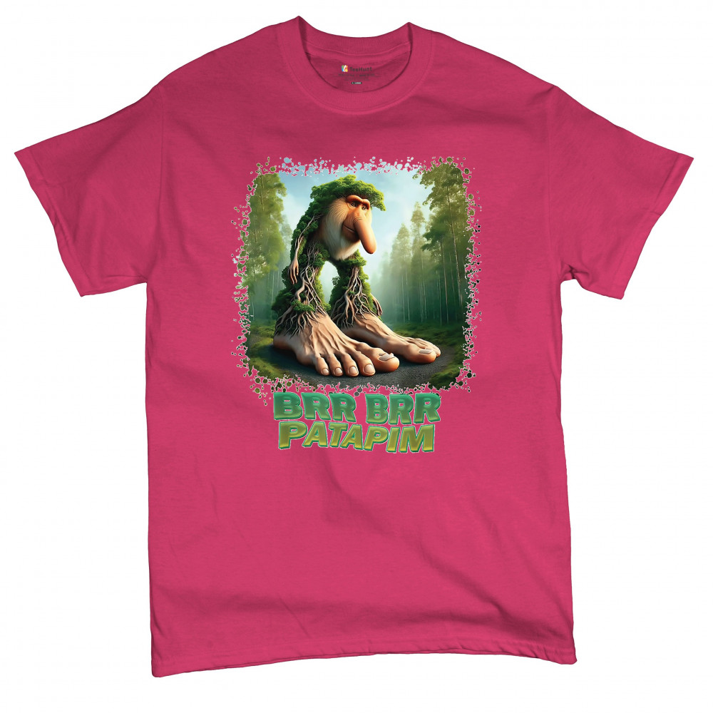 Brr Brr Patapim is forest-core gone full brainrot. Featuring a massive-footed tree-beast with cryptid energy, this design blends cursed meme culture, TikTok humor, weirdcore visuals, and surreal Gen Z fashion. It’s ideal for fans of absurd monster mashups and internet chaos fits.