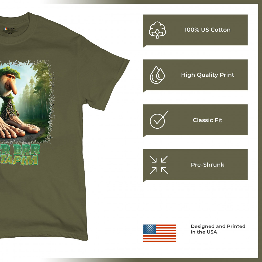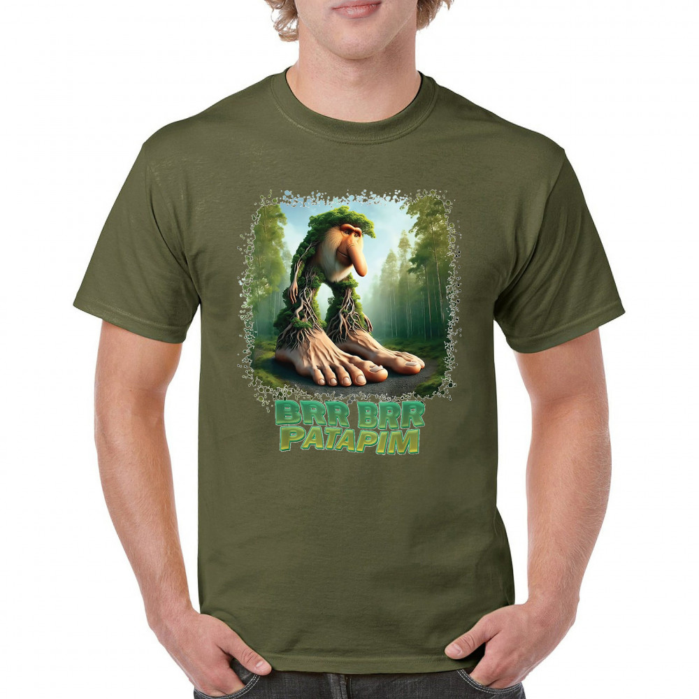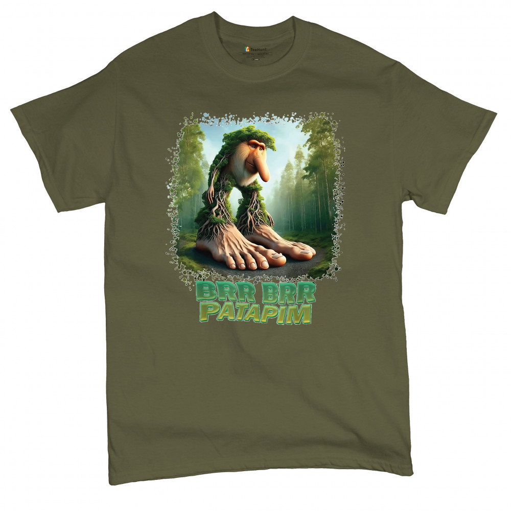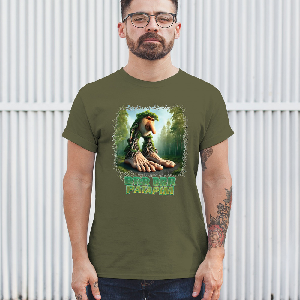Brr Brr Patapim is forest-core gone full brainrot. Featuring a massive-footed tree-beast with cryptid energy, this design blends cursed meme culture, TikTok humor, weirdcore visuals, and surreal Gen Z fashion. It’s ideal for fans of absurd monster mashups and internet chaos fits.