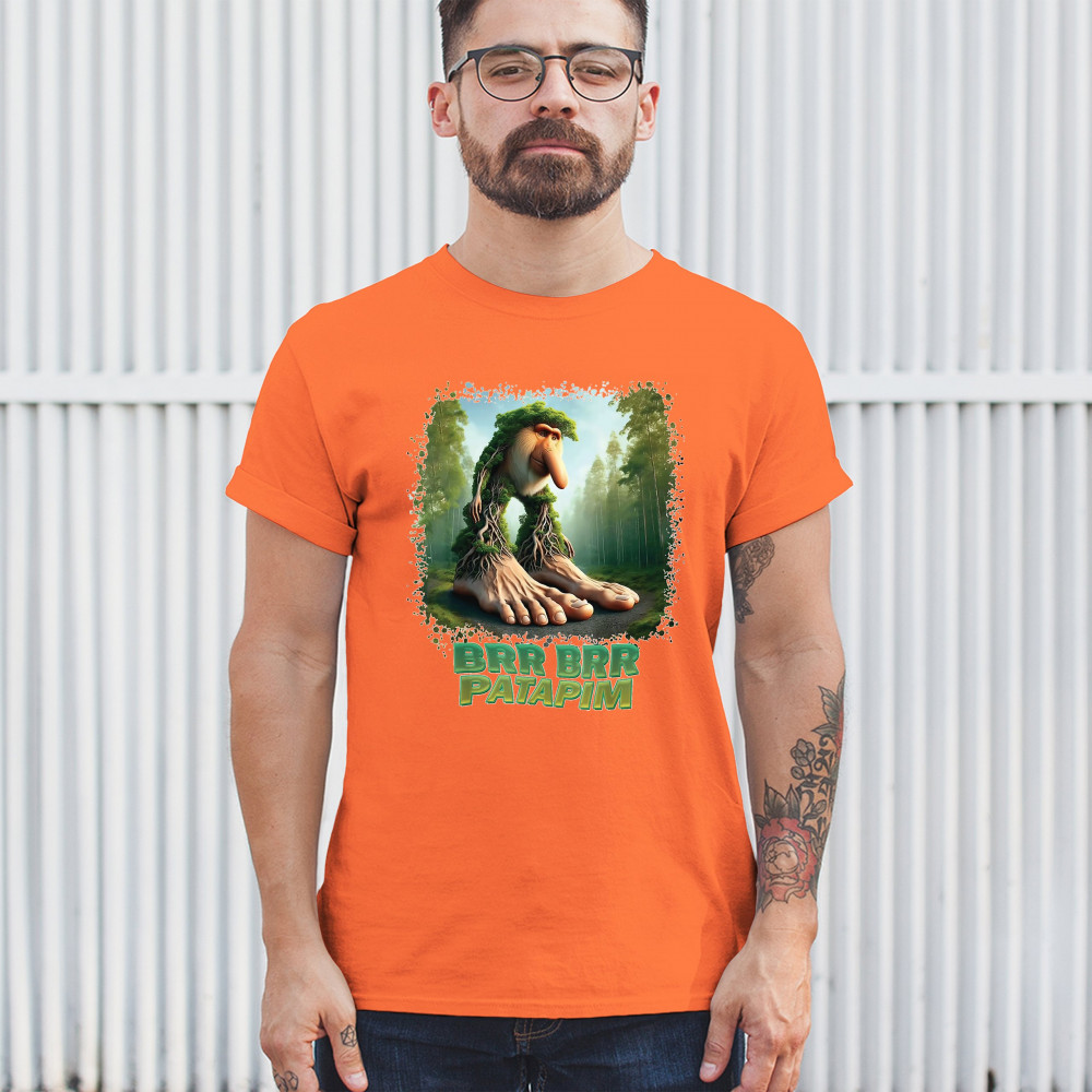 Brr Brr Patapim is forest-core gone full brainrot. Featuring a massive-footed tree-beast with cryptid energy, this design blends cursed meme culture, TikTok humor, weirdcore visuals, and surreal Gen Z fashion. It’s ideal for fans of absurd monster mashups and internet chaos fits.