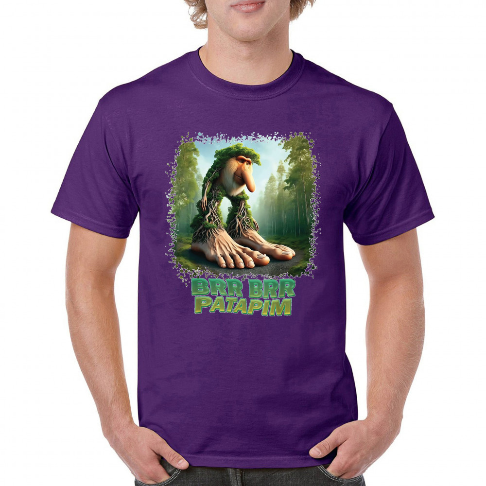 Brr Brr Patapim is forest-core gone full brainrot. Featuring a massive-footed tree-beast with cryptid energy, this design blends cursed meme culture, TikTok humor, weirdcore visuals, and surreal Gen Z fashion. It’s ideal for fans of absurd monster mashups and internet chaos fits.