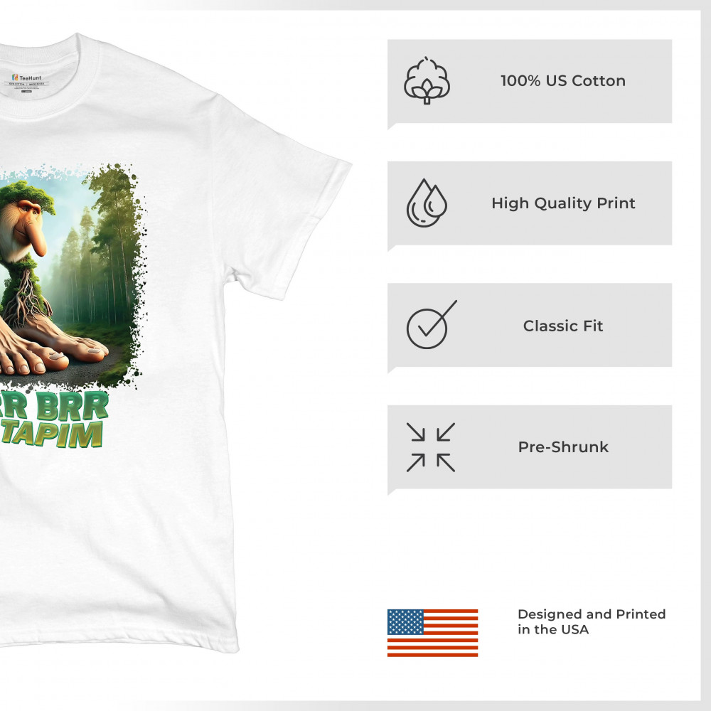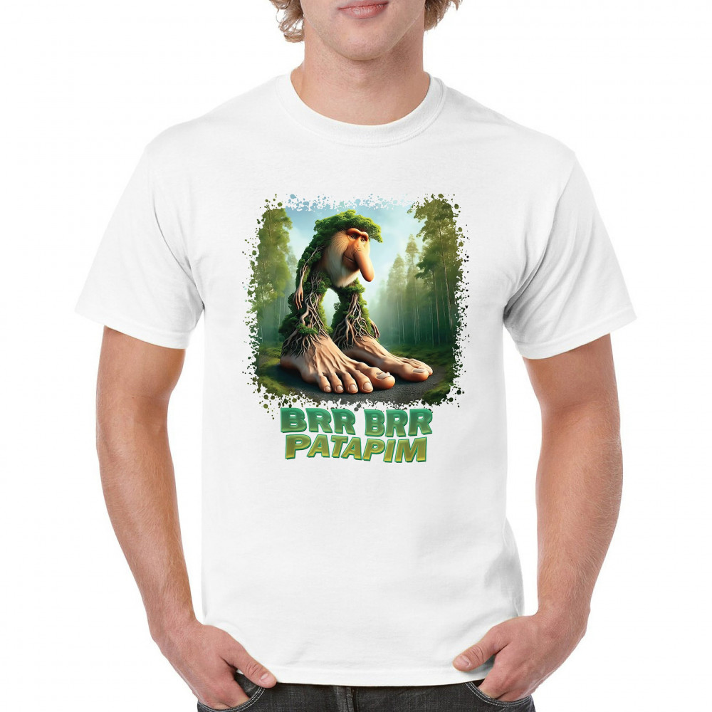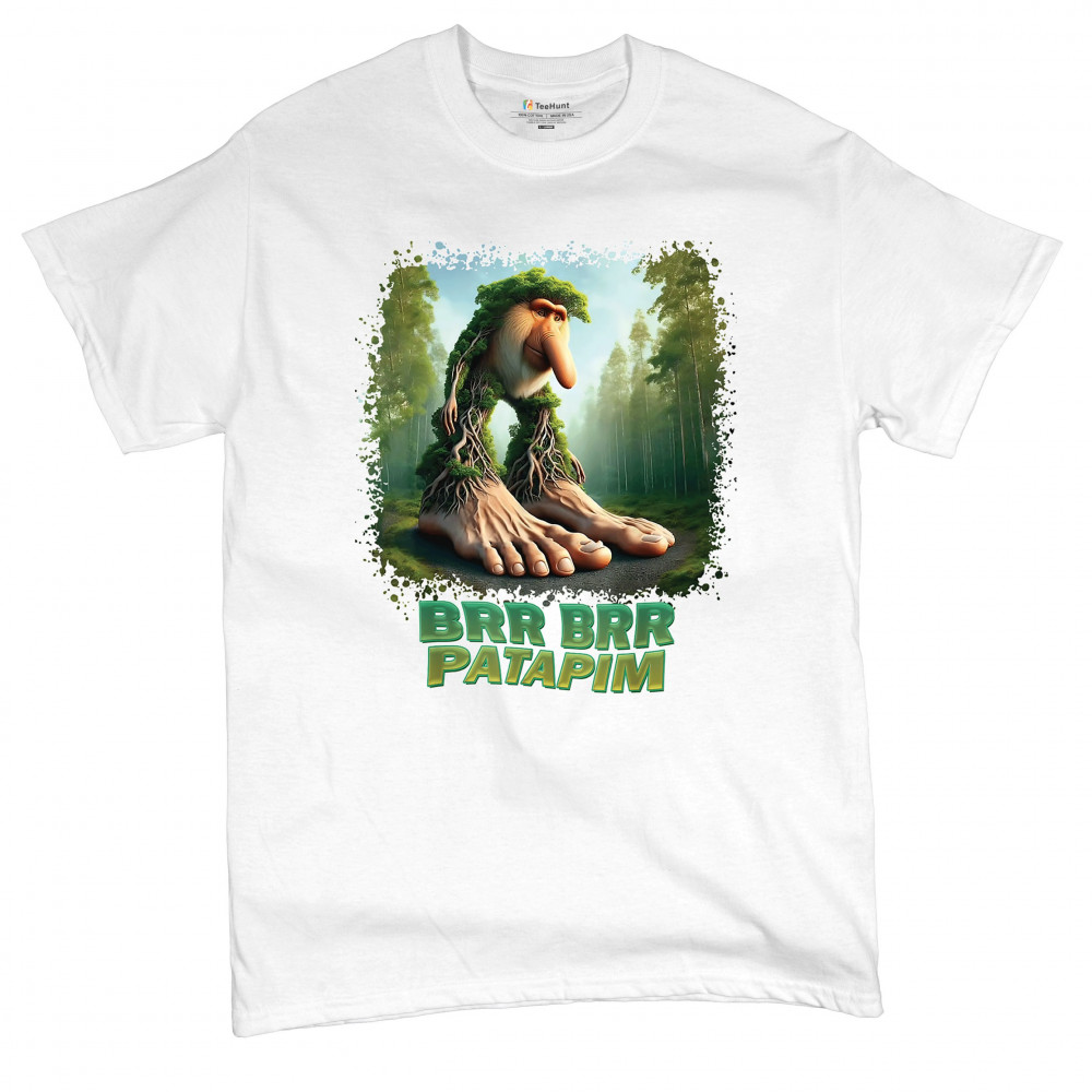 Brr Brr Patapim is forest-core gone full brainrot. Featuring a massive-footed tree-beast with cryptid energy, this design blends cursed meme culture, TikTok humor, weirdcore visuals, and surreal Gen Z fashion. It’s ideal for fans of absurd monster mashups and internet chaos fits.