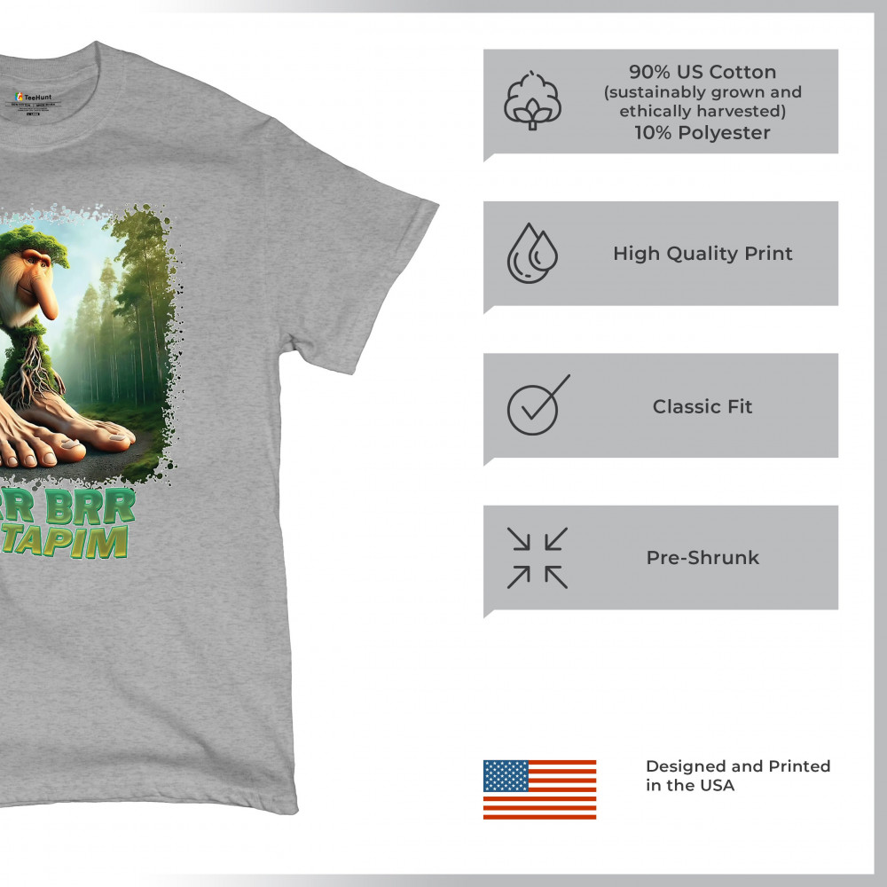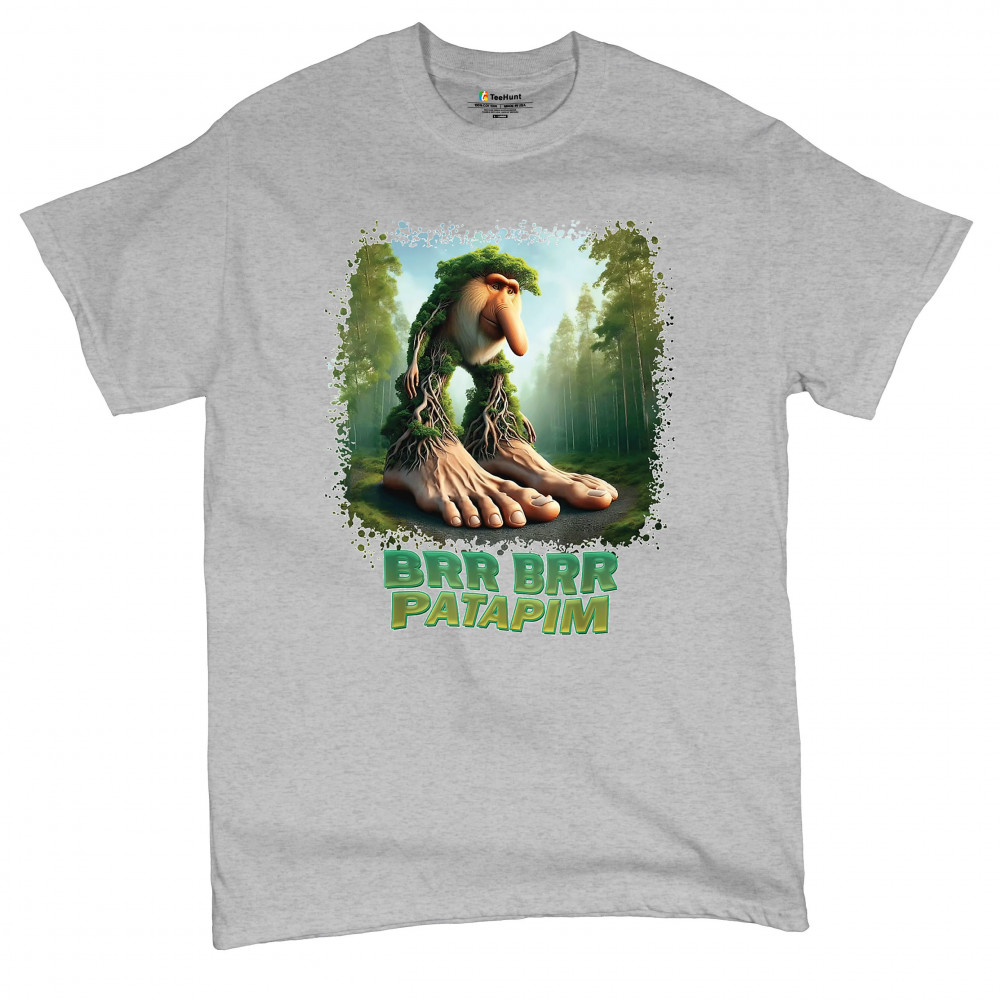 Brr Brr Patapim is forest-core gone full brainrot. Featuring a massive-footed tree-beast with cryptid energy, this design blends cursed meme culture, TikTok humor, weirdcore visuals, and surreal Gen Z fashion. It’s ideal for fans of absurd monster mashups and internet chaos fits.