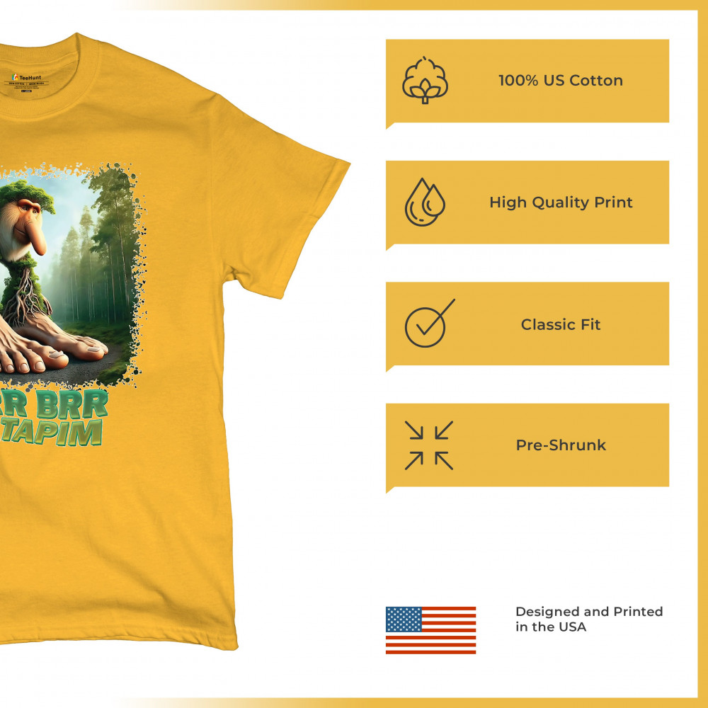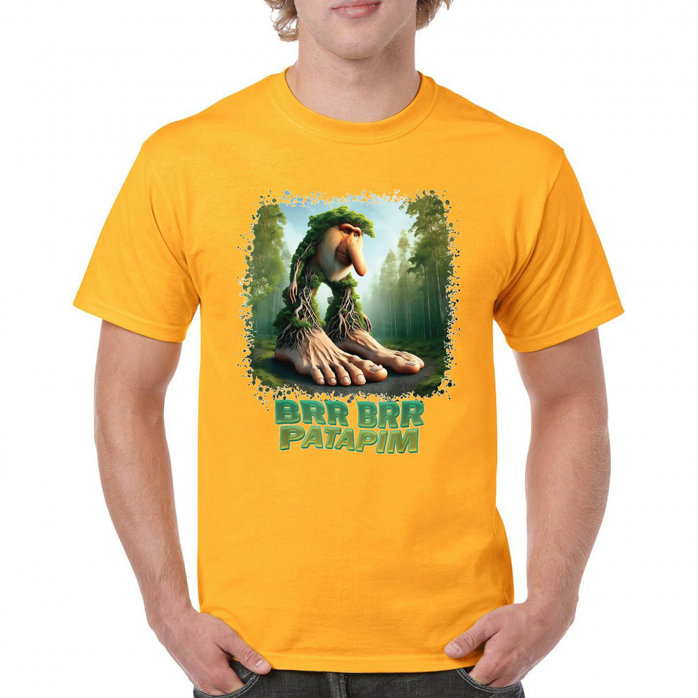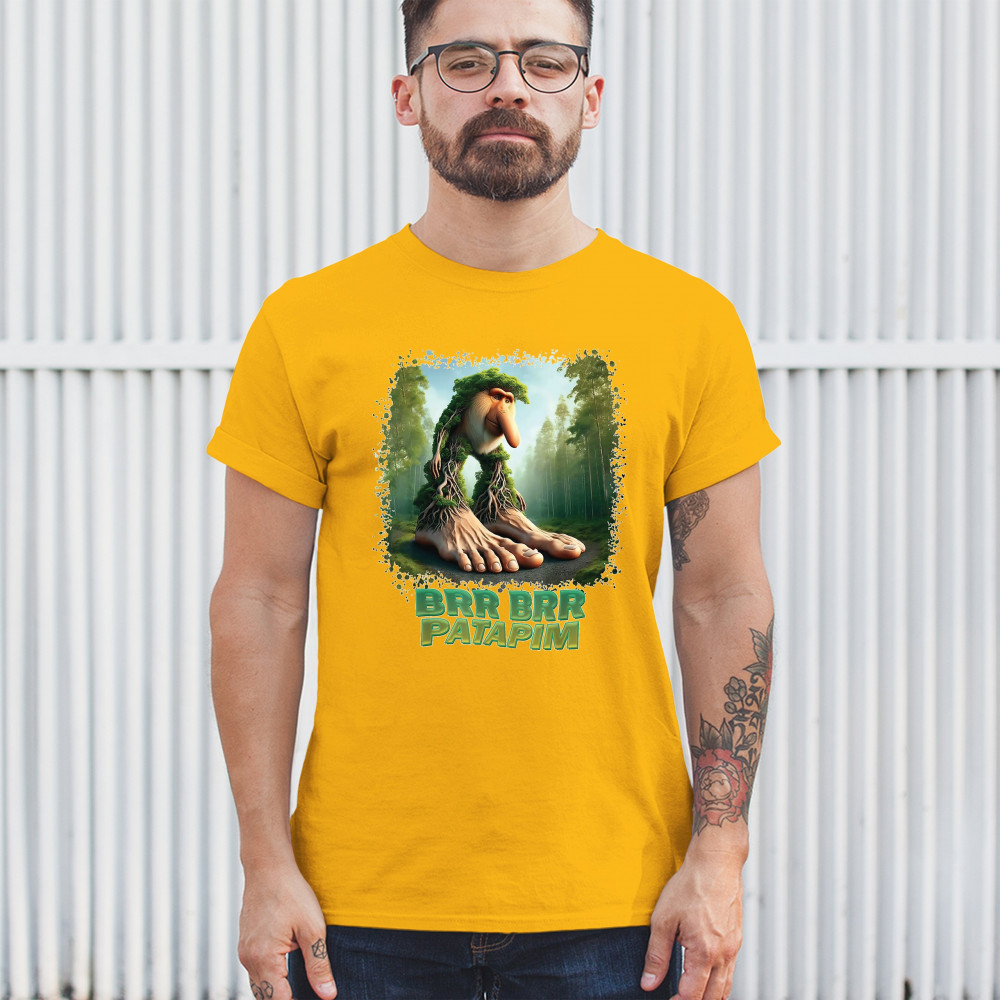 Brr Brr Patapim is forest-core gone full brainrot. Featuring a massive-footed tree-beast with cryptid energy, this design blends cursed meme culture, TikTok humor, weirdcore visuals, and surreal Gen Z fashion. It’s ideal for fans of absurd monster mashups and internet chaos fits.