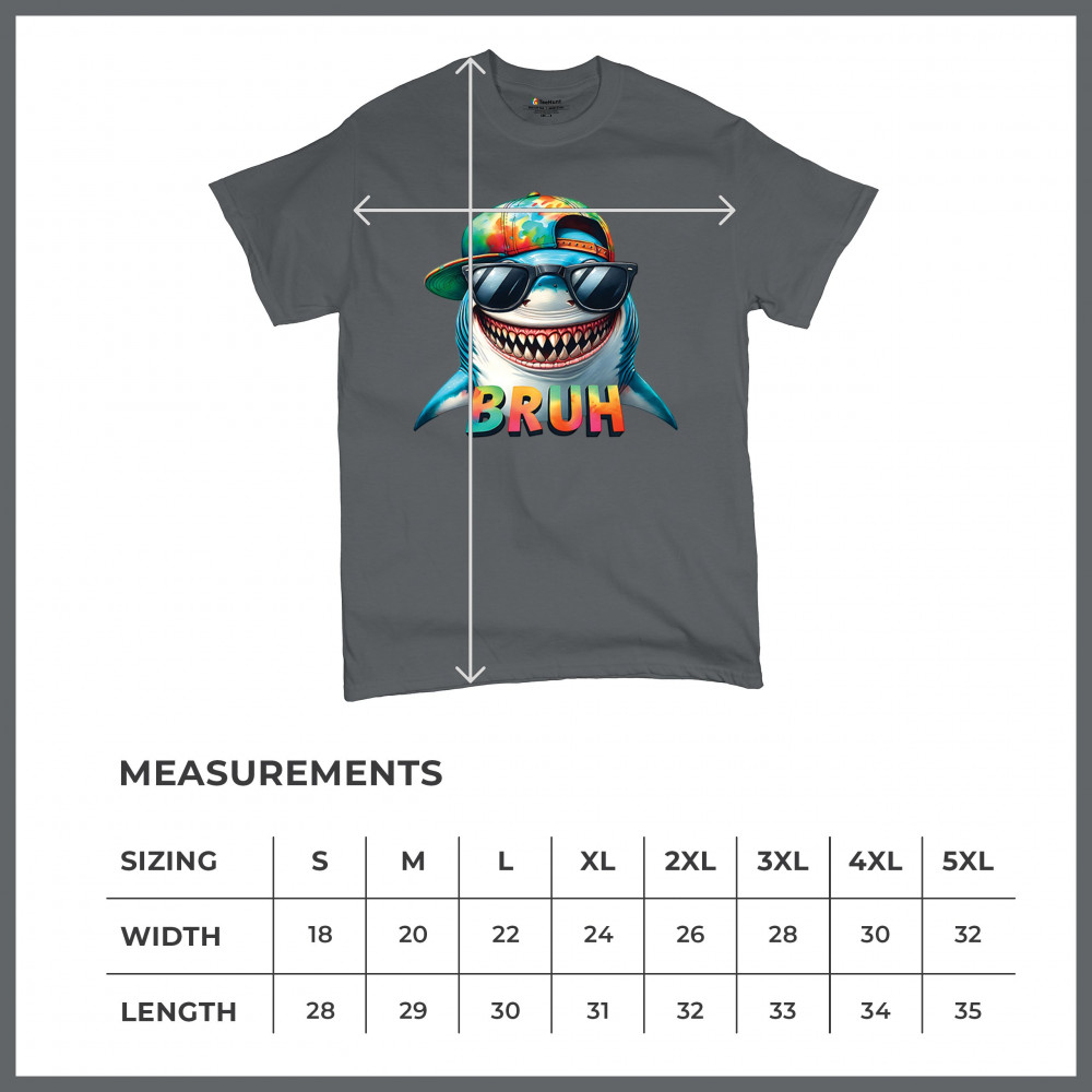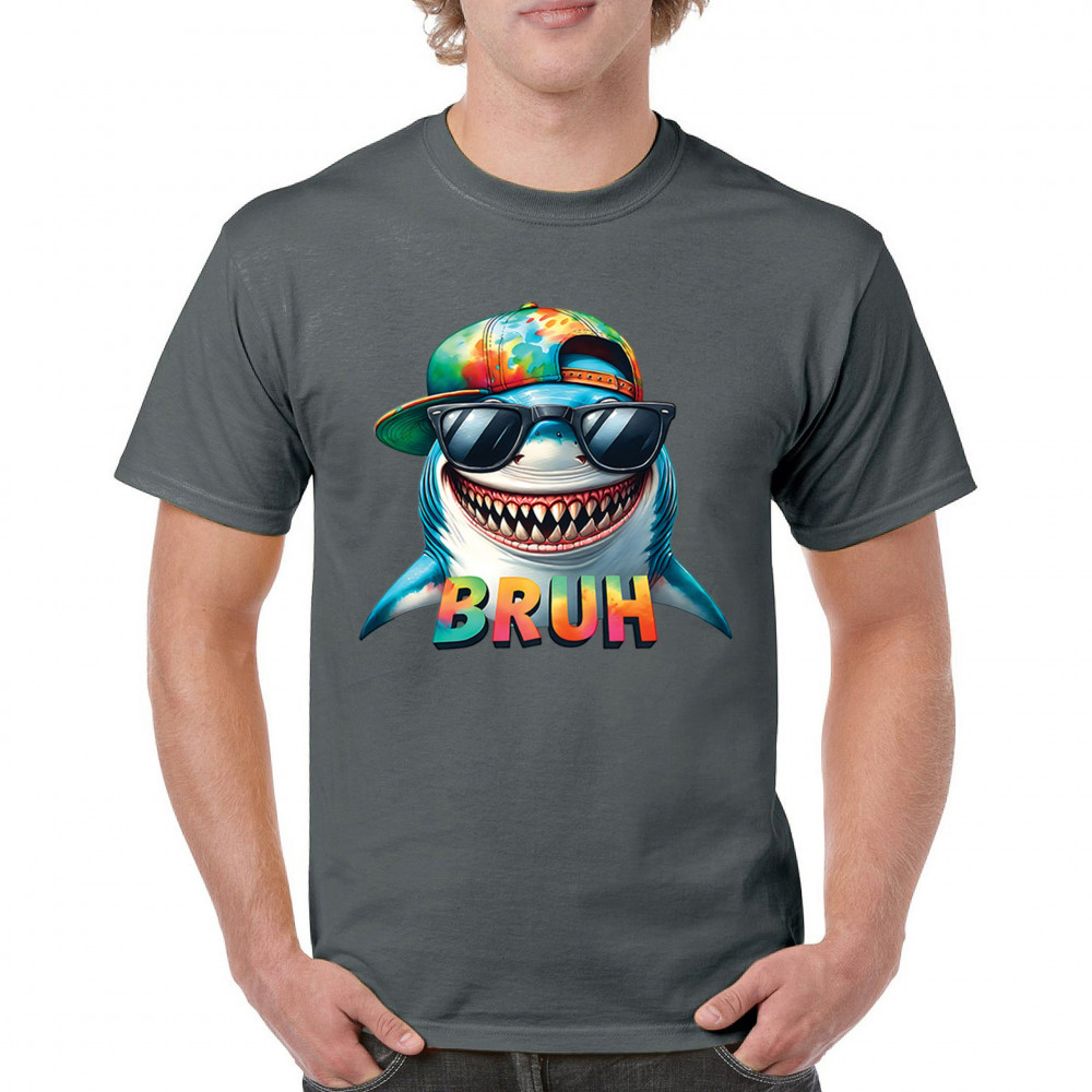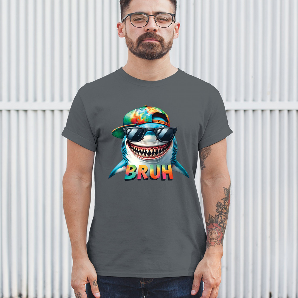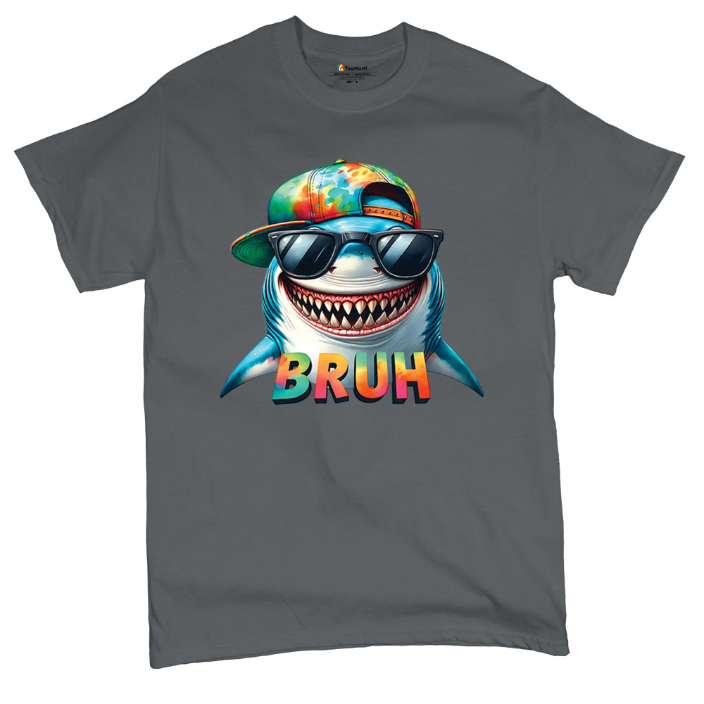 Bruh Shark meme shirt with Gen Z humor, cartoon shark design, summer beach vibes, Sigma Aura, and Italian Brainrot internet humor.