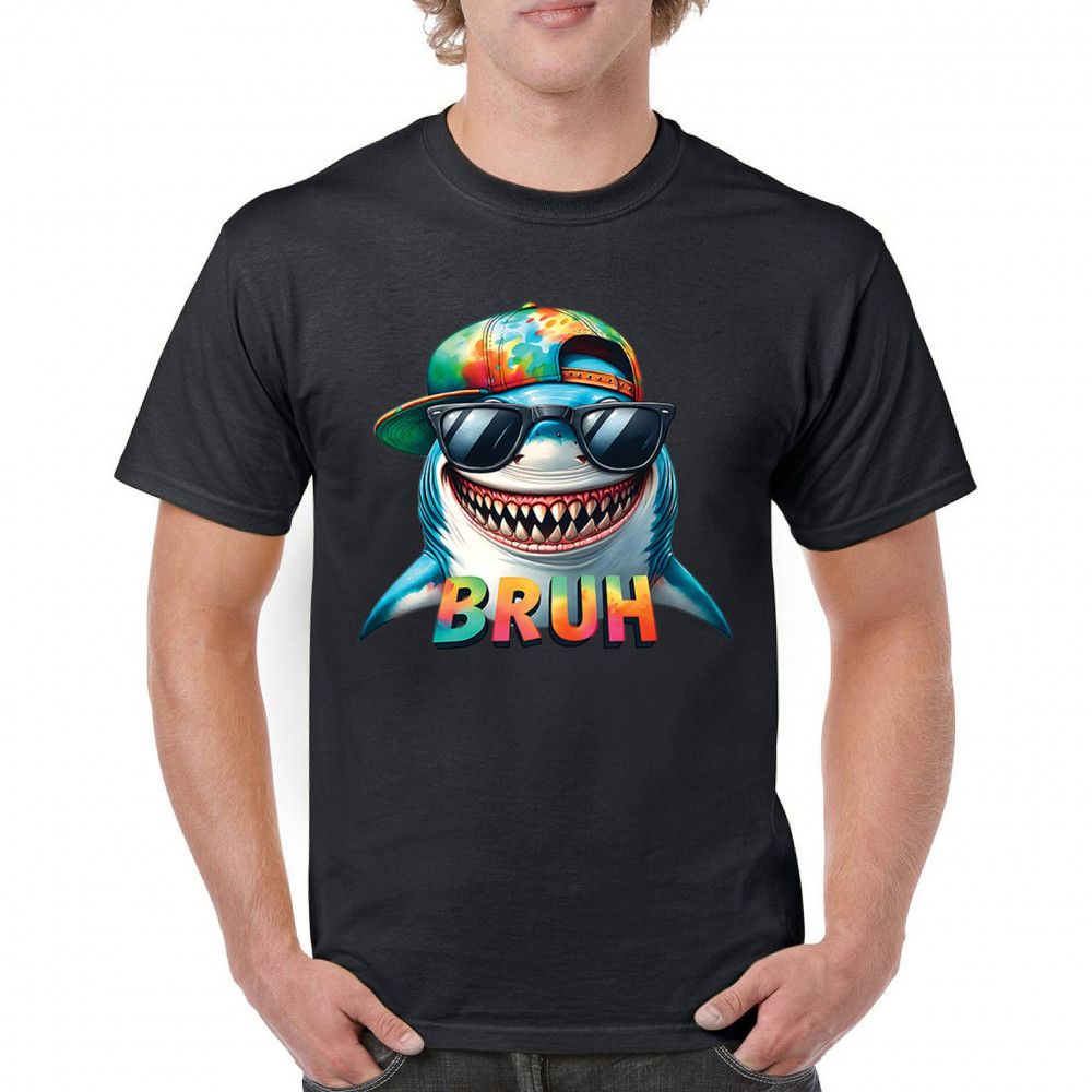 BRUH SHARK t-shirt gen z goofy tralalero tralala skibidi sigma men's tee black