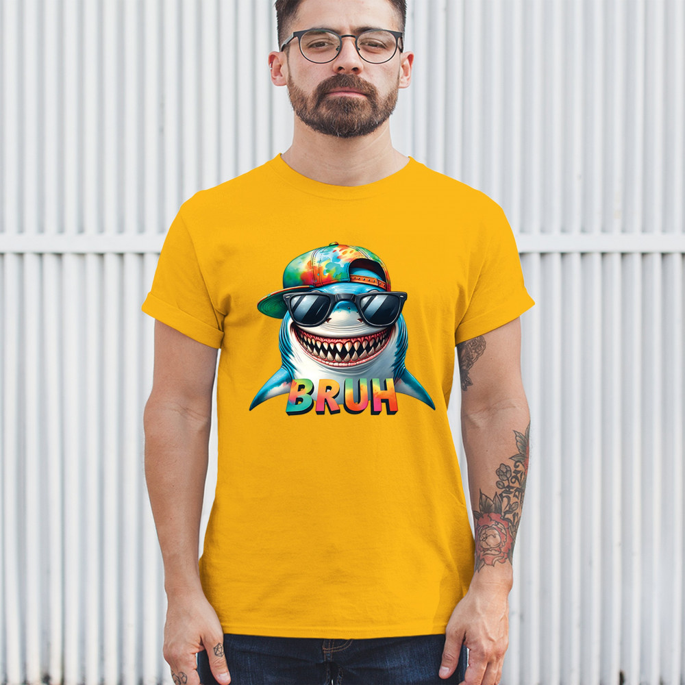 Ride the wave of meme culture with this Bruh Shark Gen Z design, featuring goofy cartoon shark humor, Sigma Aura vibes, and Italian Brainrot energy. Perfect for fans of bruh meme shirts, summer beach vibes, ocean party style, and funny animal meme culture. A must-have for anyone who loves Skibidi Sigma Rizz humor.