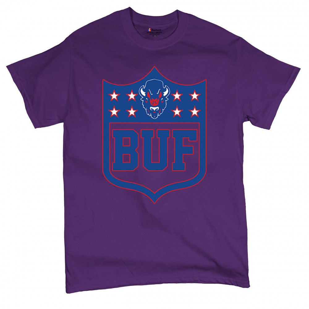 Bold Buffalo bison shield design for game day gear, tailgating, Sunday football, and championship pride in The Queen City.