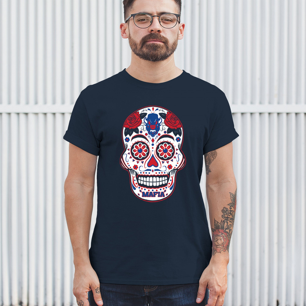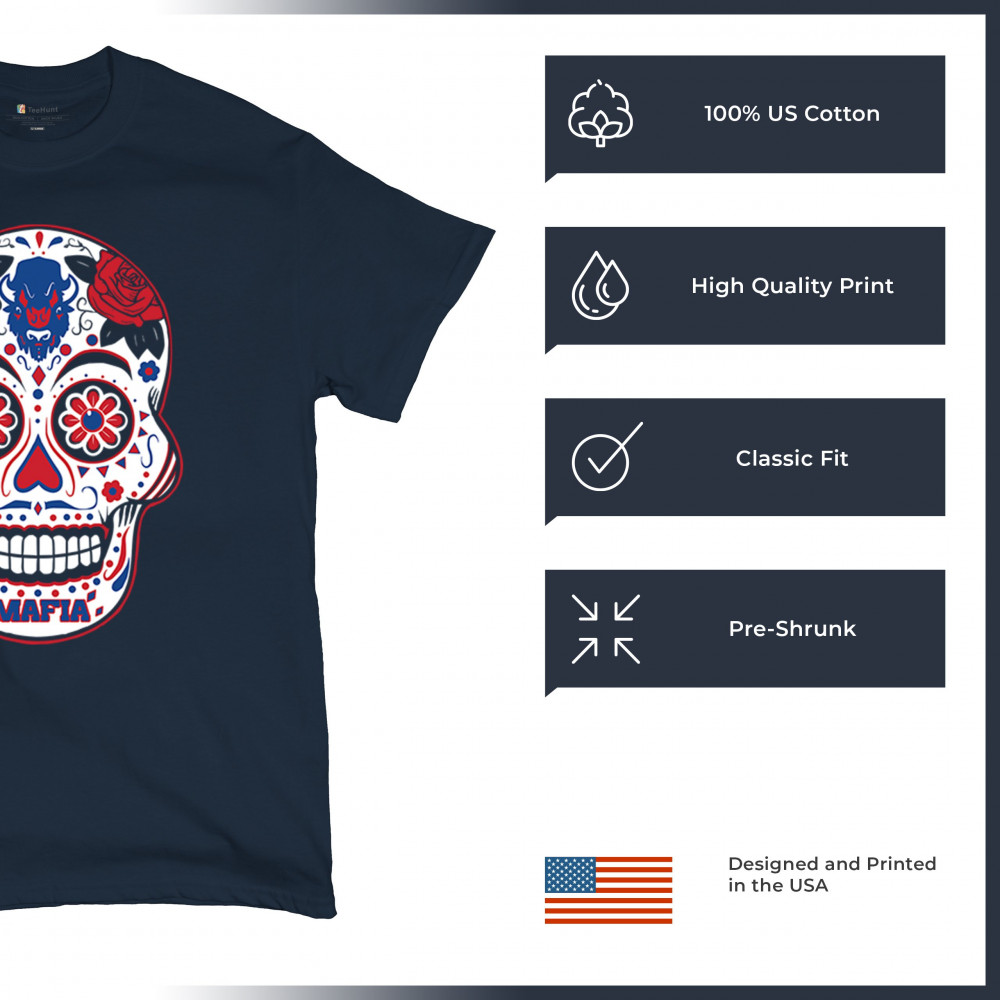 Celebrate Buffalo football with this Sugar Skull design inspired by Dia de los Muertos. Featuring NY Bleed Blue toughness, Northern Grit, and Queen City spirit, it’s made for tailgate parties, playoff energy, and fantasy football rivalries. A bold calavera for true Buffalo fans who live Game Day pride.