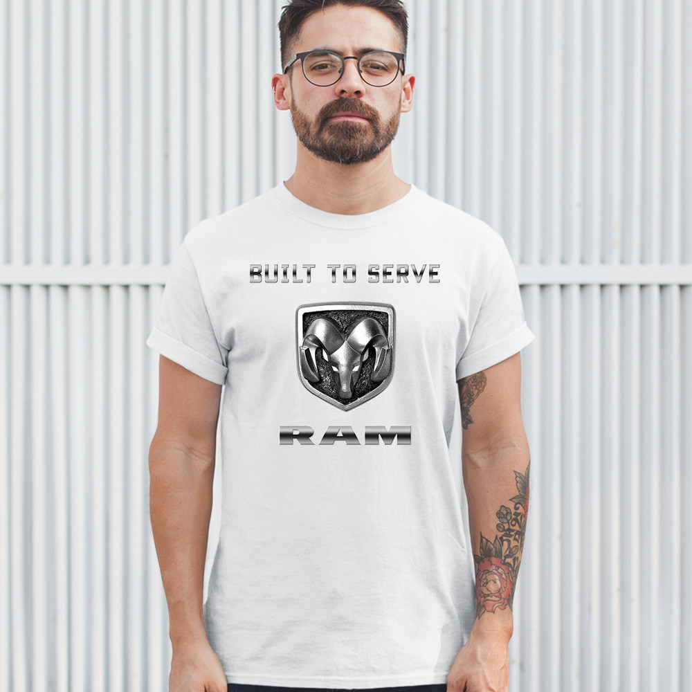 A print featuring the RAM logo and saying: "Built to Serve". A great choice for anyone who loves American made cars, RAM trucks, and off-road driving.