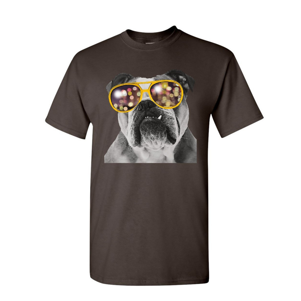 BULLDOG WEARING GLASSES t-shirt cute dog swag pet lovers urban mens tee shirt brown