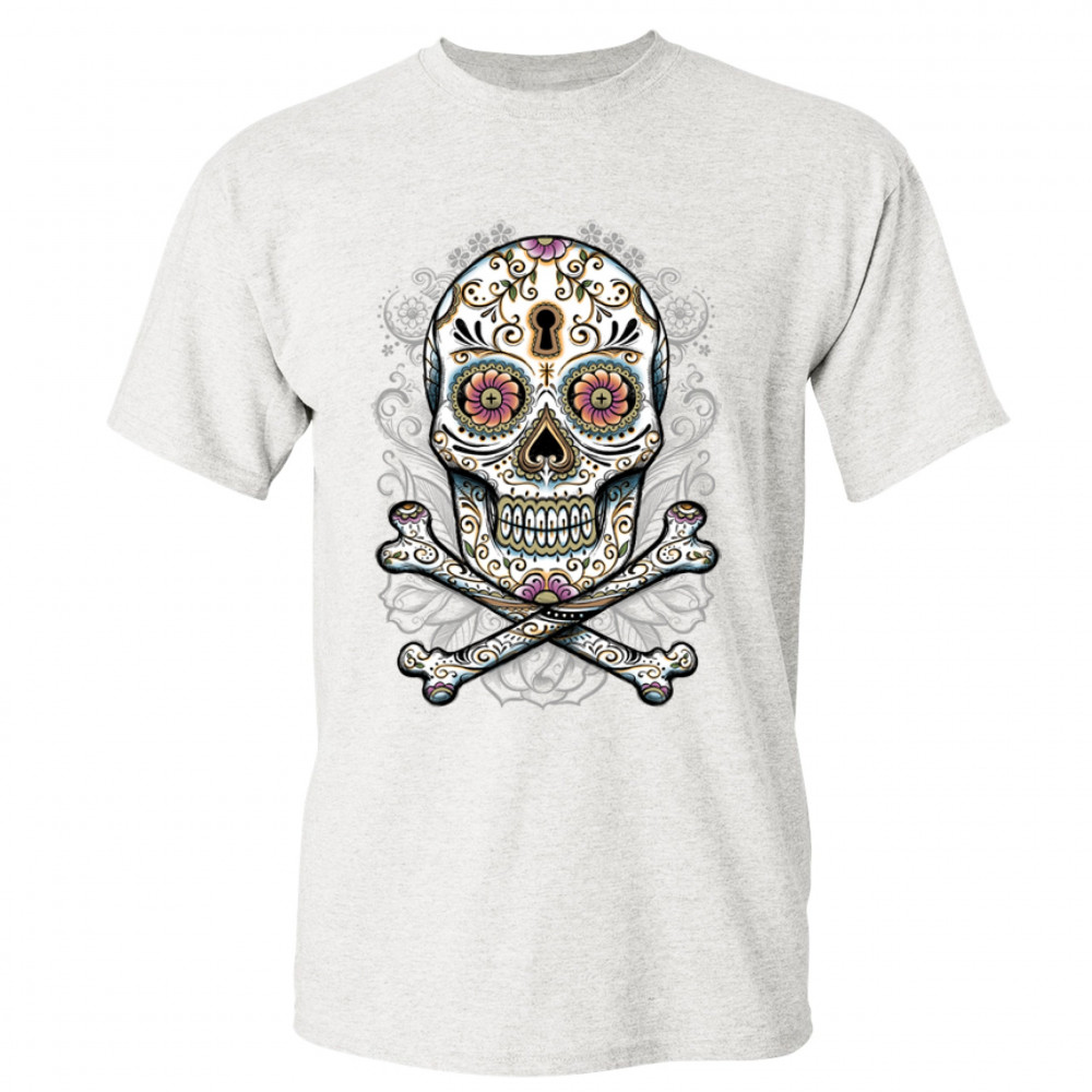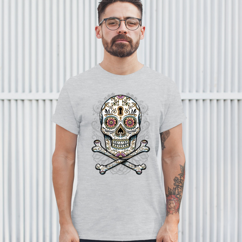 CALAVERA SUGAR SKULL t-shirt mexican day of the dead dia de muertos men's tee ash gray