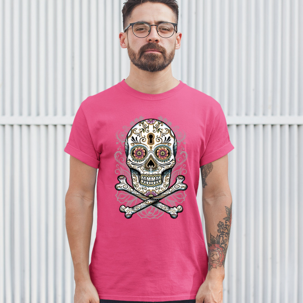 CALAVERA SUGAR SKULL t-shirt mexican day of the dead dia de muertos men's tee hot pink