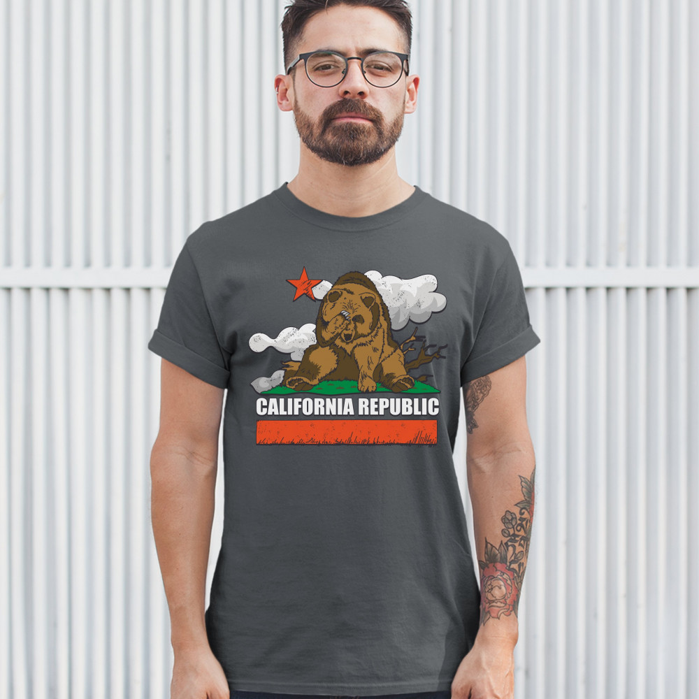 A political print featuring the grizzly bear of the California State flag sitting on it's butt and facepalming. The print says: "California Republic". A great choice for anyone who isn't a fan of California.