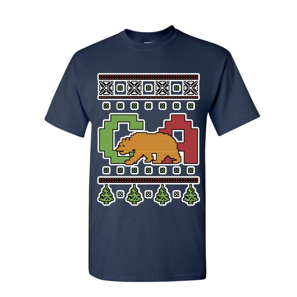 CALIFORNIA REPUBLIC UGLY SWEATER t-shirt christmas xmas ca bear mens tee shirt navy blue