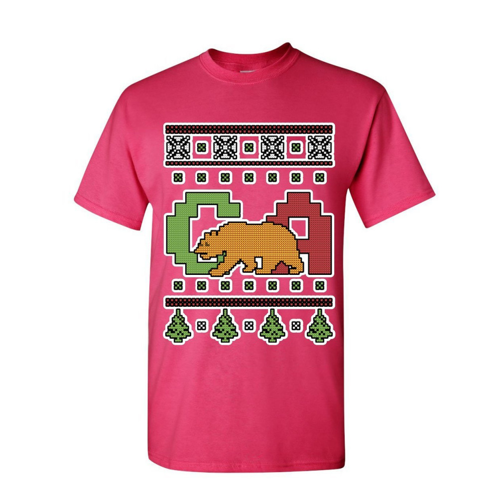 CALIFORNIA REPUBLIC UGLY SWEATER t-shirt christmas xmas ca bear mens tee shirt hot pink