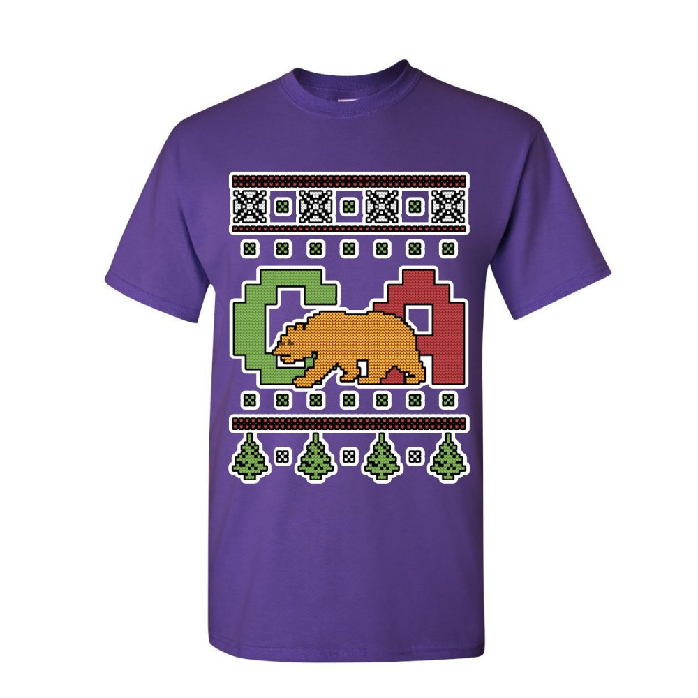 CALIFORNIA REPUBLIC UGLY SWEATER t-shirt christmas xmas ca bear mens tee shirt purple