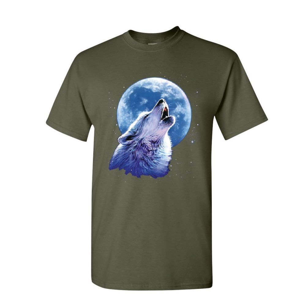 CALL OF THE WILD t-shirt lone wolf howling at the moon wildlife mens tee shirt military green