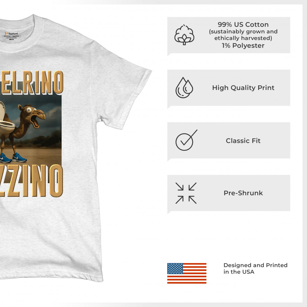 Camelrino Tazzino delivers a double flush of internet madness. With a toilet body, running shoes, and a camel's face frozen in horror, this meme mashup blends cursed-core design, viral TikTok humor, surreal animal chaos, and Gen Z meme fashion. Built for weirdcore lovers and internet irony addicts.
