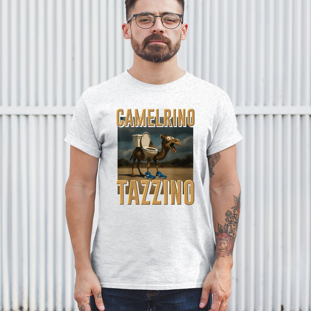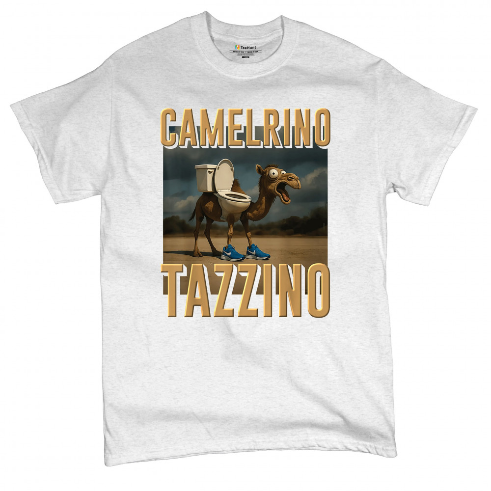 Camelrino Tazzino fuses toilet-core fashion, cursed camel chaos, TikTok meme humor, surreal animal design, and Gen Z absurdity.