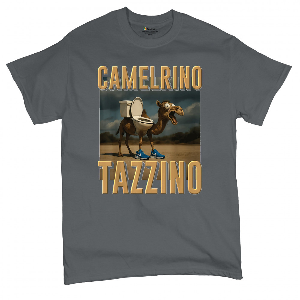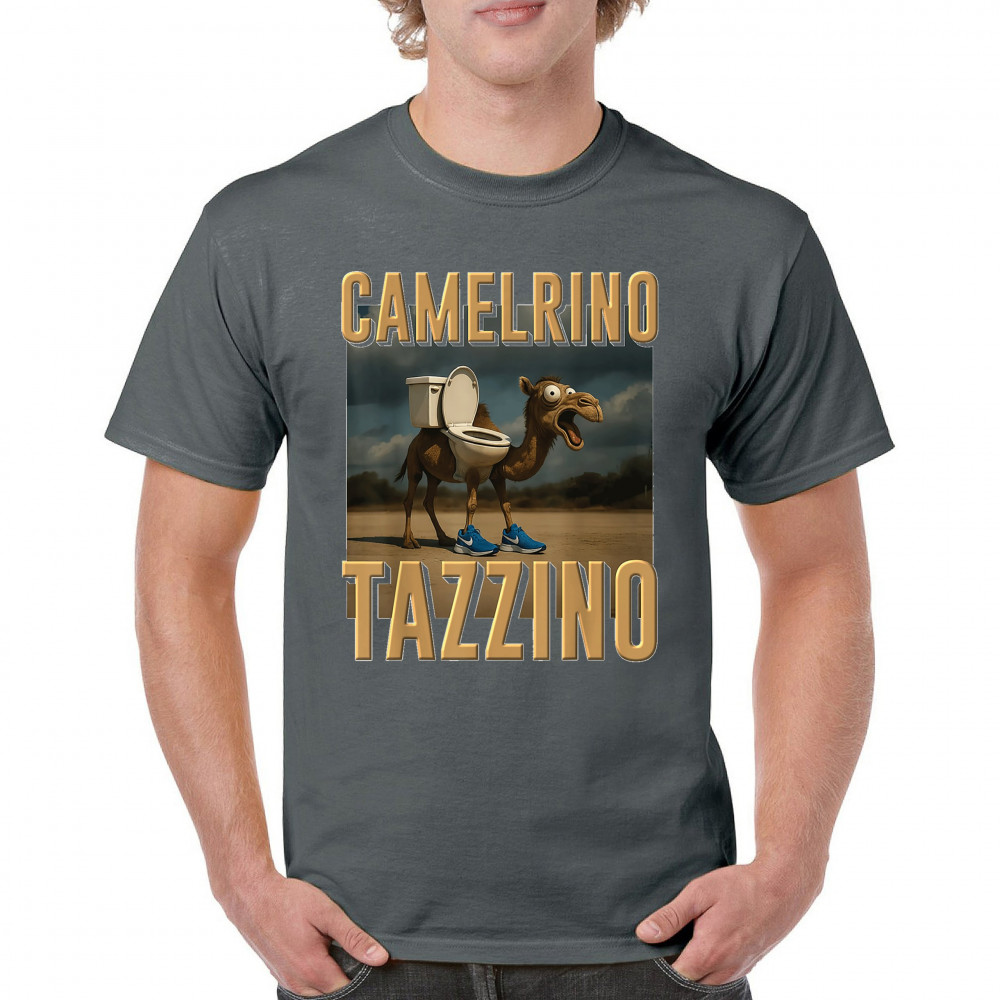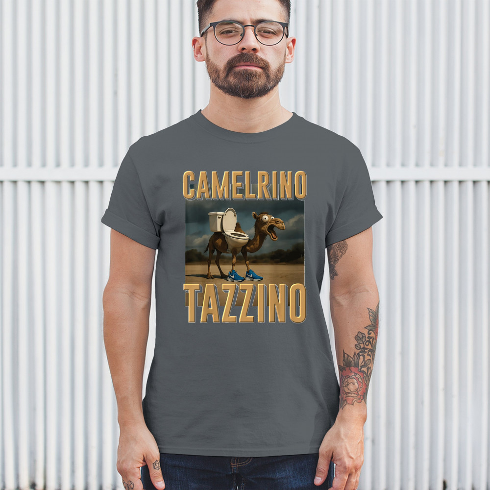 Camelrino Tazzino fuses toilet-core fashion, cursed camel chaos, TikTok meme humor, surreal animal design, and Gen Z absurdity.