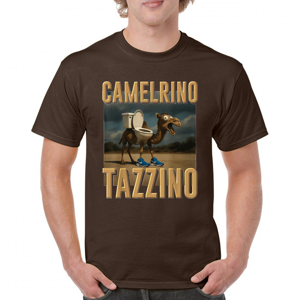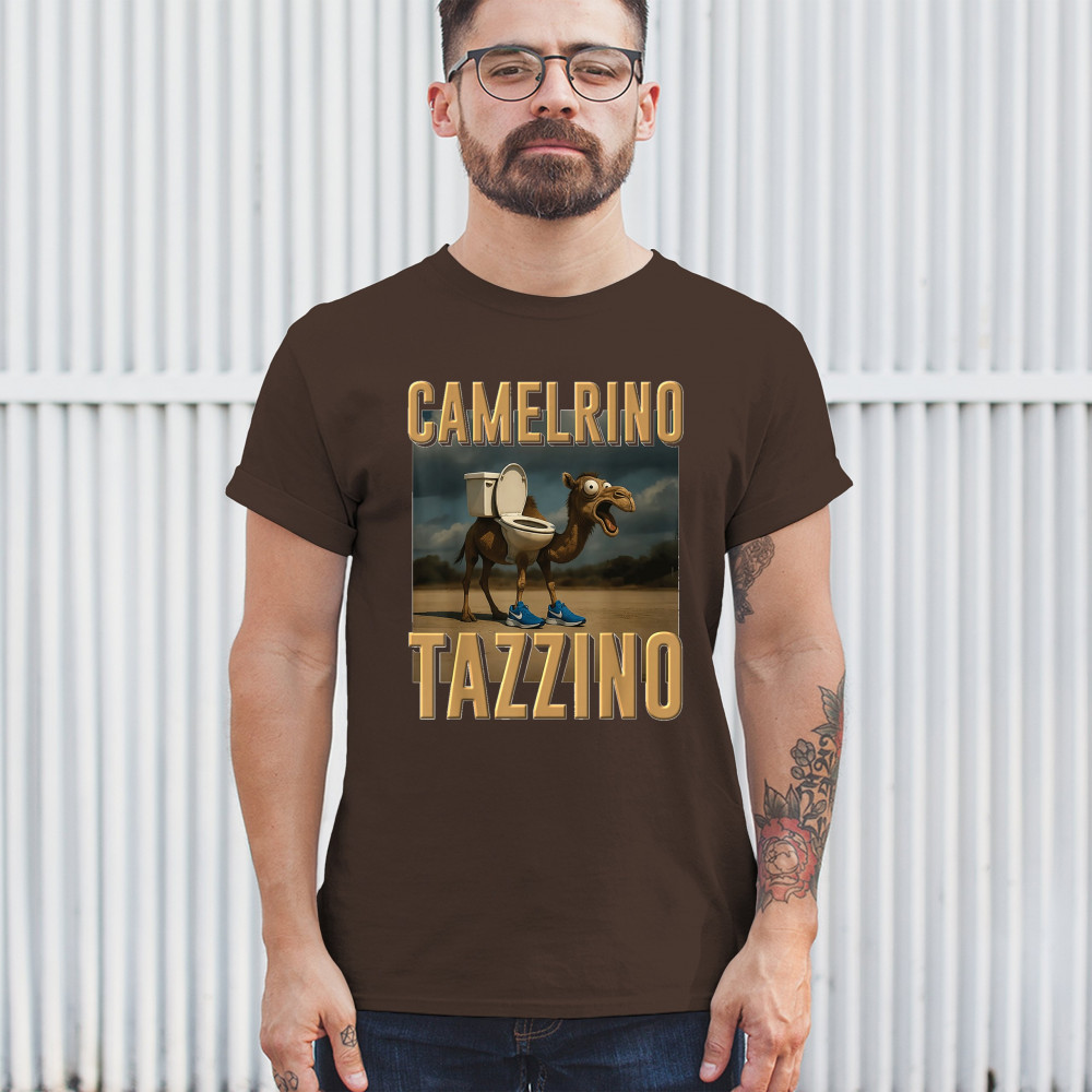 Camelrino Tazzino fuses toilet-core fashion, cursed camel chaos, TikTok meme humor, surreal animal design, and Gen Z absurdity.