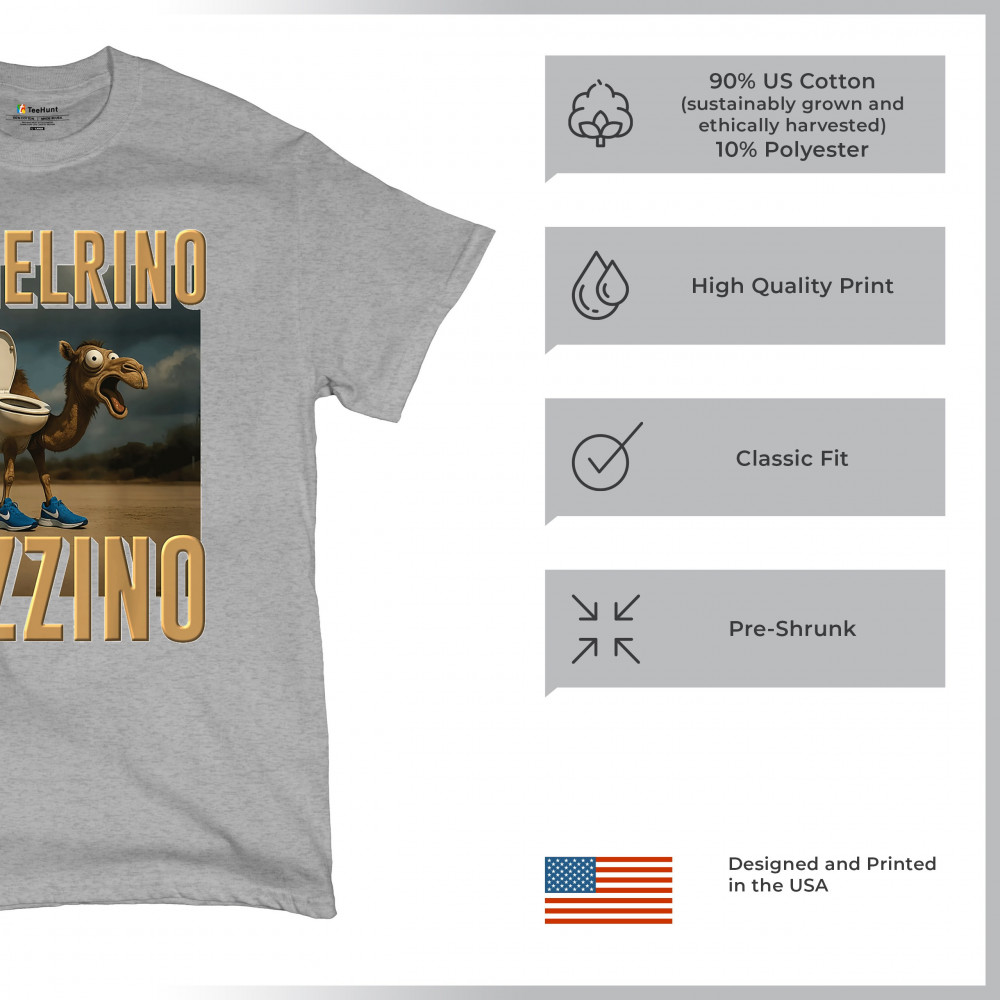 Camelrino Tazzino delivers a double flush of internet madness. With a toilet body, running shoes, and a camel's face frozen in horror, this meme mashup blends cursed-core design, viral TikTok humor, surreal animal chaos, and Gen Z meme fashion. Built for weirdcore lovers and internet irony addicts.