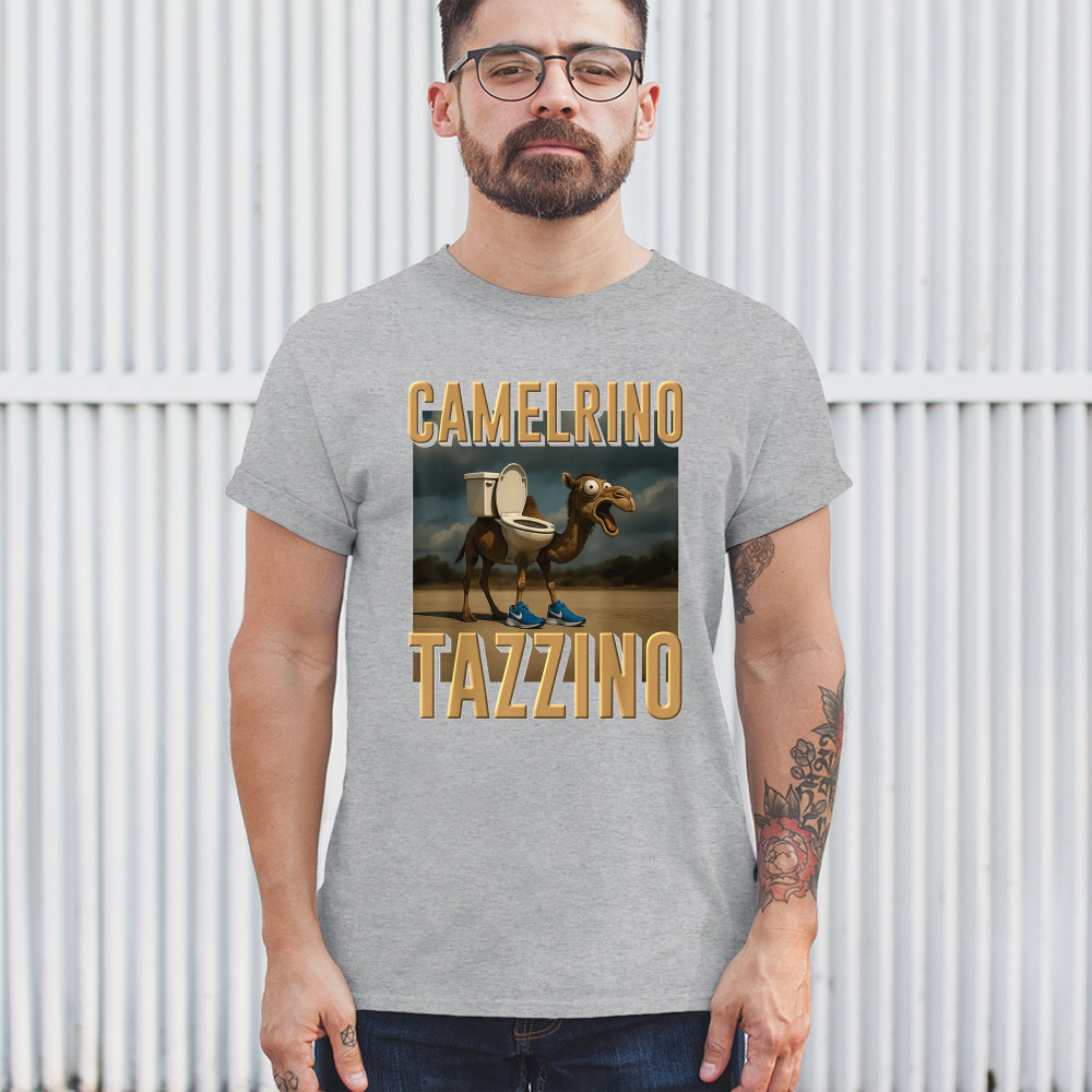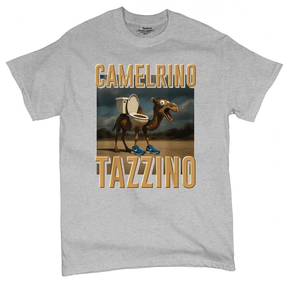 Camelrino Tazzino fuses toilet-core fashion, cursed camel chaos, TikTok meme humor, surreal animal design, and Gen Z absurdity.