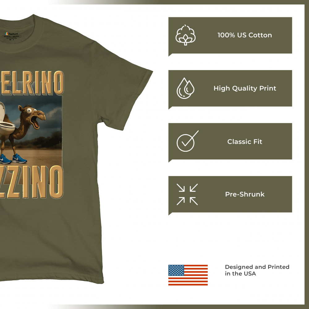 Camelrino Tazzino delivers a double flush of internet madness. With a toilet body, running shoes, and a camel's face frozen in horror, this meme mashup blends cursed-core design, viral TikTok humor, surreal animal chaos, and Gen Z meme fashion. Built for weirdcore lovers and internet irony addicts.
