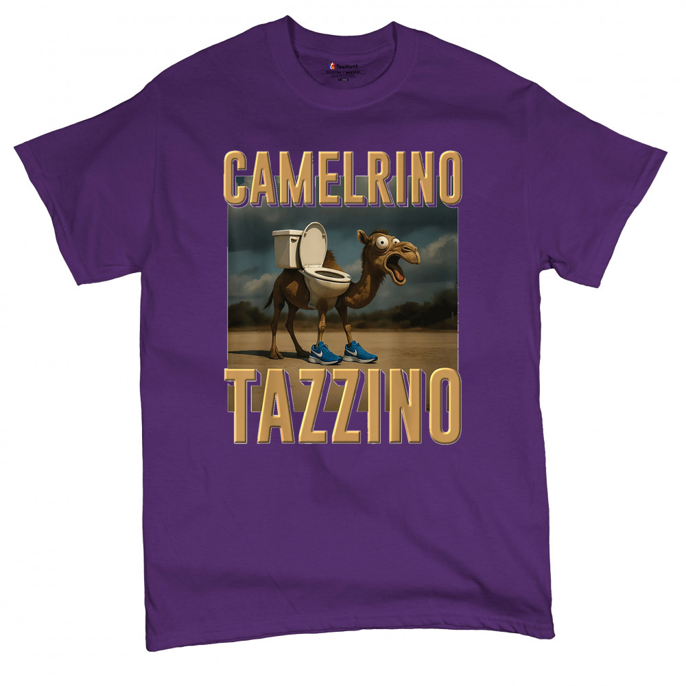 Camelrino Tazzino fuses toilet-core fashion, cursed camel chaos, TikTok meme humor, surreal animal design, and Gen Z absurdity.