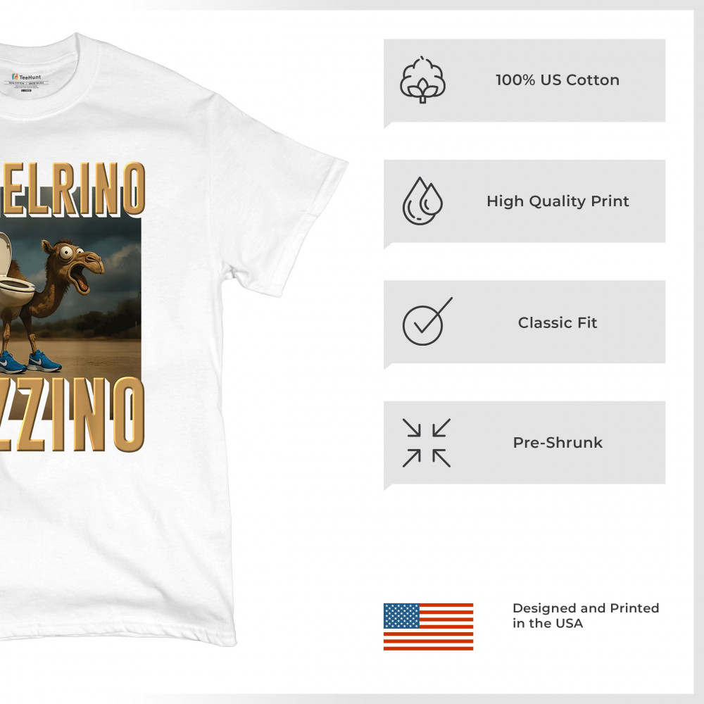 Camelrino Tazzino delivers a double flush of internet madness. With a toilet body, running shoes, and a camel's face frozen in horror, this meme mashup blends cursed-core design, viral TikTok humor, surreal animal chaos, and Gen Z meme fashion. Built for weirdcore lovers and internet irony addicts.