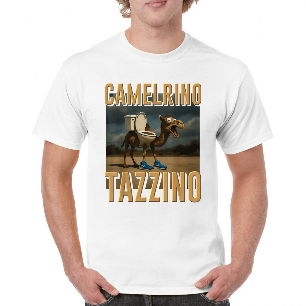 Camelrino Tazzino fuses toilet-core fashion, cursed camel chaos, TikTok meme humor, surreal animal design, and Gen Z absurdity.