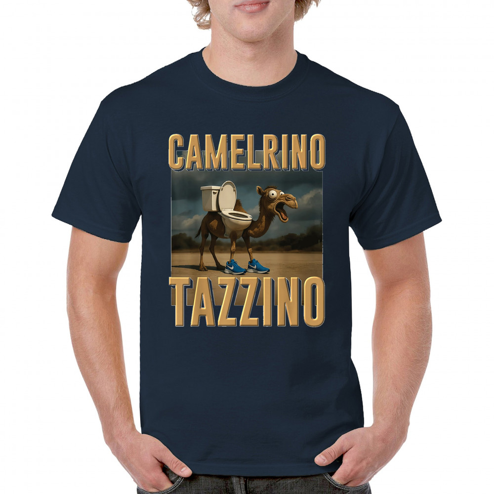 Camelrino Tazzino fuses toilet-core fashion, cursed camel chaos, TikTok meme humor, surreal animal design, and Gen Z absurdity.
