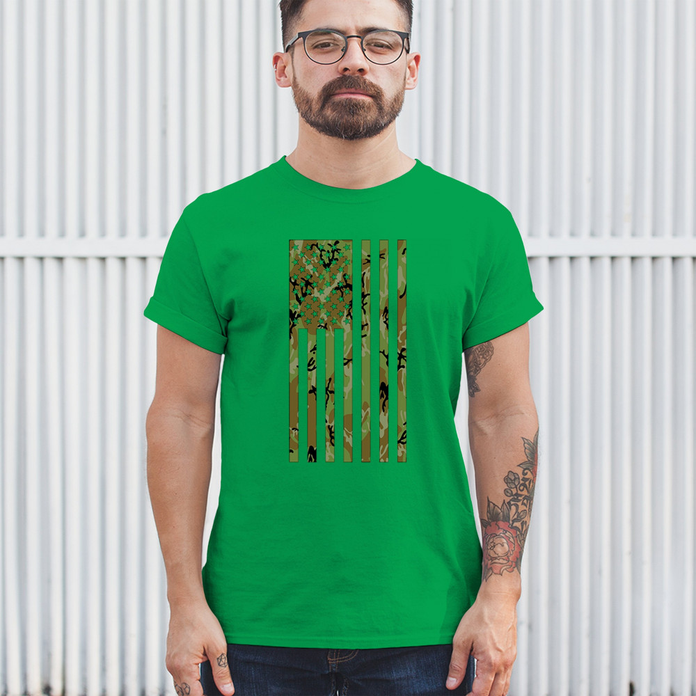 Celebrate your American pride with this bold camouflage American flag design. Perfect for veterans, active military members, and patriots who stand for freedom and honor. This design is an excellent choice for patriotic occasions such as Independence Day, Memorial Day, and Veterans Day. Show your support for the Second Amendment and the values that make America great. Wear it proudly and let your love for the USA be seen.