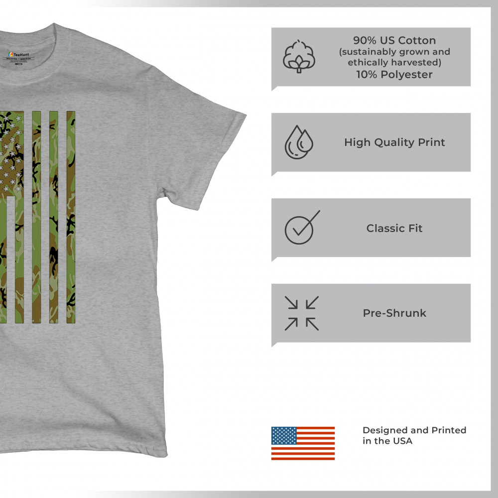 Celebrate your American pride with this bold camouflage American flag design. Perfect for veterans, active military members, and patriots who stand for freedom and honor. This design is an excellent choice for patriotic occasions such as Independence Day, Memorial Day, and Veterans Day. Show your support for the Second Amendment and the values that make America great. Wear it proudly and let your love for the USA be seen.