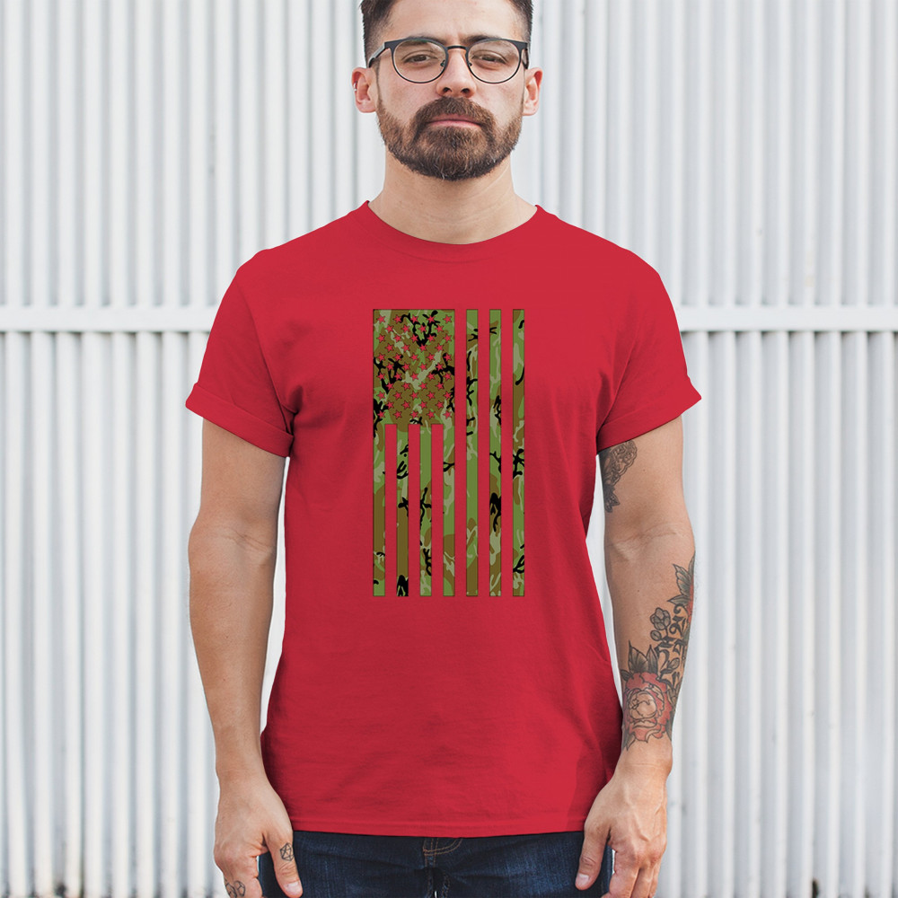 Celebrate your American pride with this bold camouflage American flag design. Perfect for veterans, active military members, and patriots who stand for freedom and honor. This design is an excellent choice for patriotic occasions such as Independence Day, Memorial Day, and Veterans Day. Show your support for the Second Amendment and the values that make America great. Wear it proudly and let your love for the USA be seen.