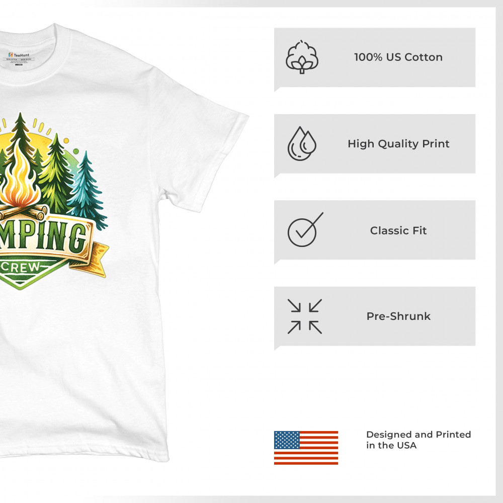 Camping Crew is made for trail lovers, glamping fans, and outdoorsmen who thrive in nature. Celebrate camping adventures, campfire moments, and wilderness vibes with this fun, cozy design. Perfect for family trips, forest escapes, and national park exploration in any season.