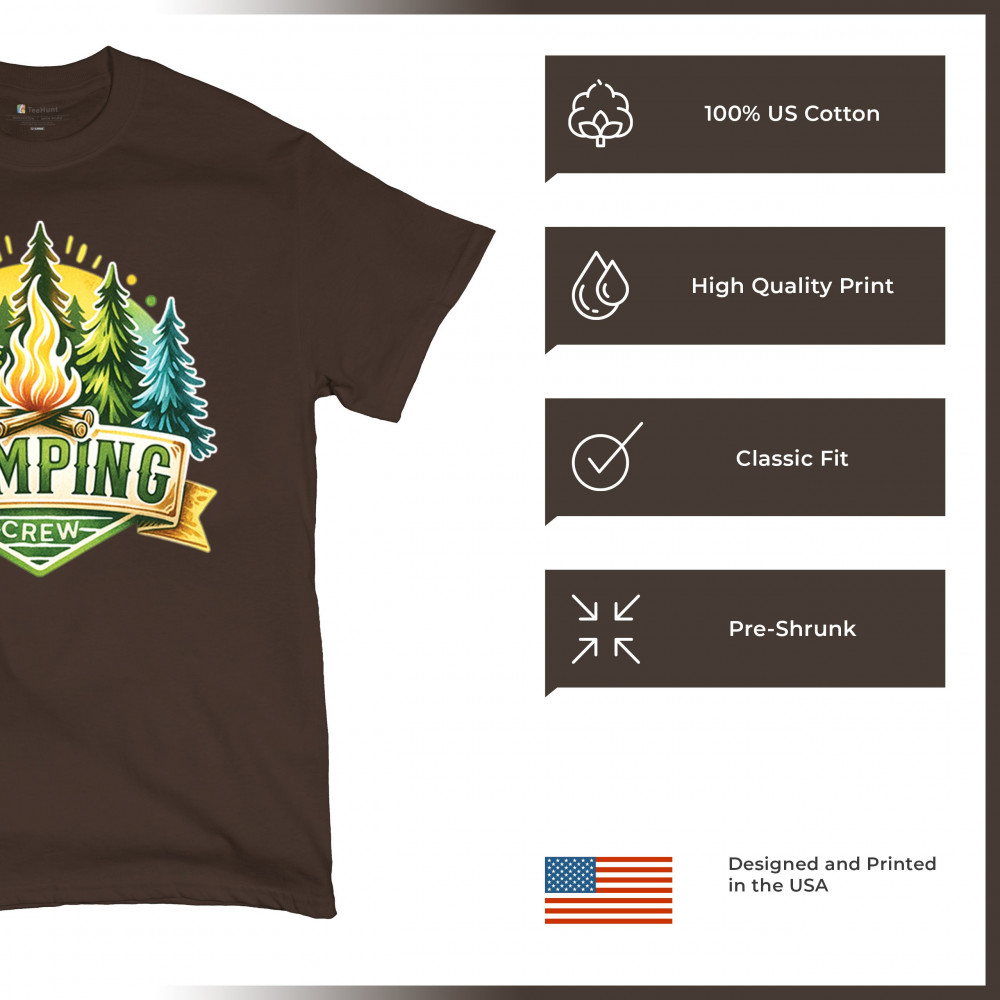Camping Crew is made for trail lovers, glamping fans, and outdoorsmen who thrive in nature. Celebrate camping adventures, campfire moments, and wilderness vibes with this fun, cozy design. Perfect for family trips, forest escapes, and national park exploration in any season.