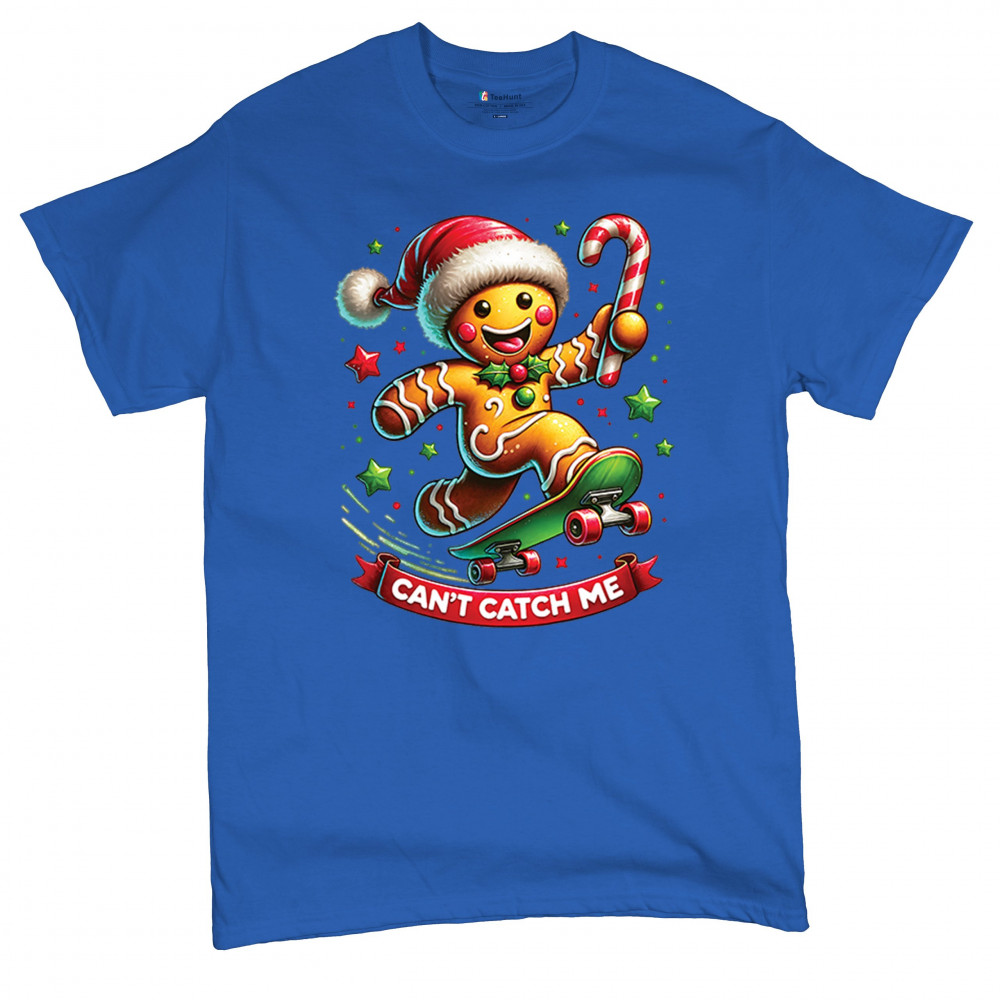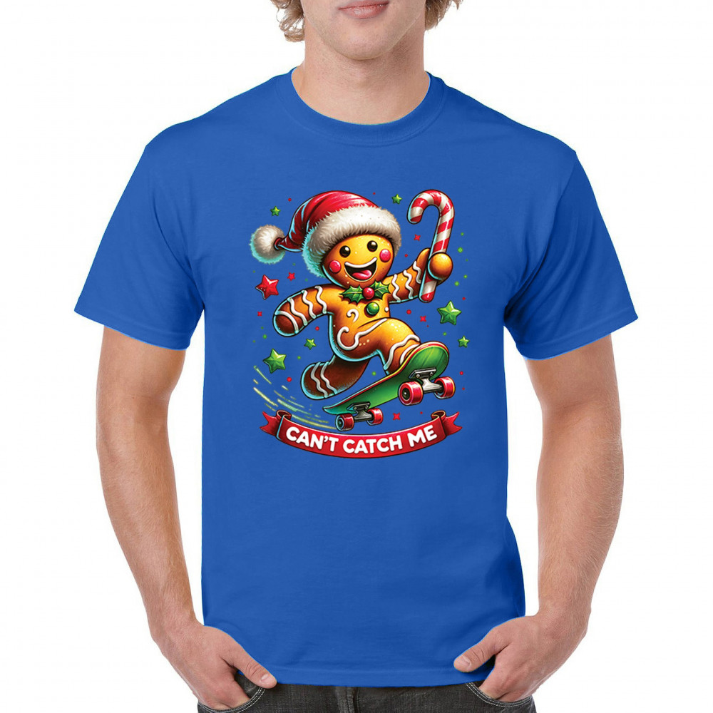 A fun Christmas design featuring a gingerbread character on a skateboard, candy cane in hand, and bright festive colors. Perfect for holiday party outfits, family gatherings, Christmas photos, festive humor fans, stocking stuffer gifting, winter celebrations, and anyone who loves playful seasonal graphics with cheerful personality.