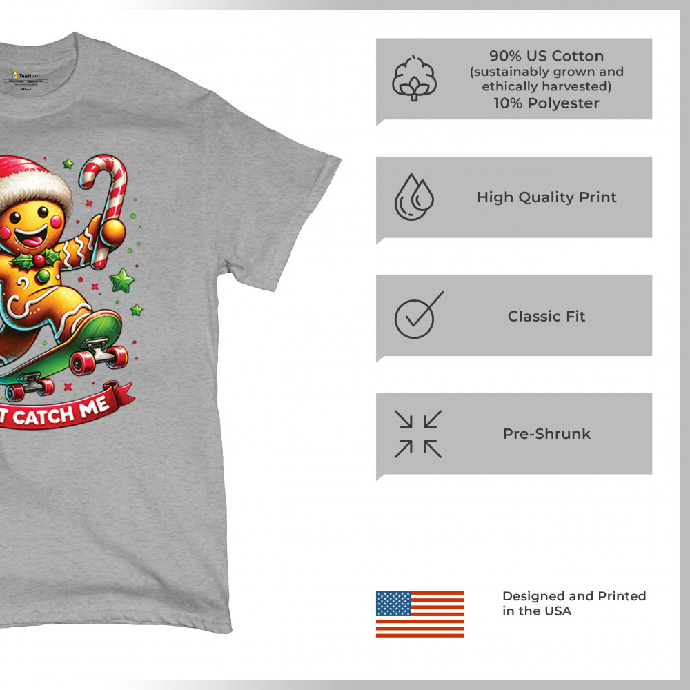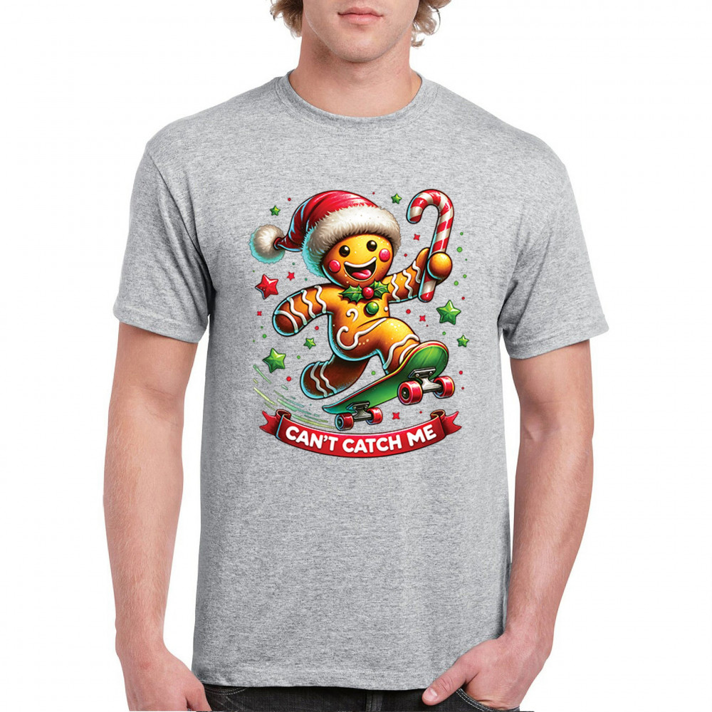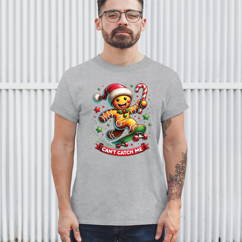 A fun Christmas design featuring a gingerbread character on a skateboard, candy cane in hand, and bright festive colors. Perfect for holiday party outfits, family gatherings, Christmas photos, festive humor fans, stocking stuffer gifting, winter celebrations, and anyone who loves playful seasonal graphics with cheerful personality.