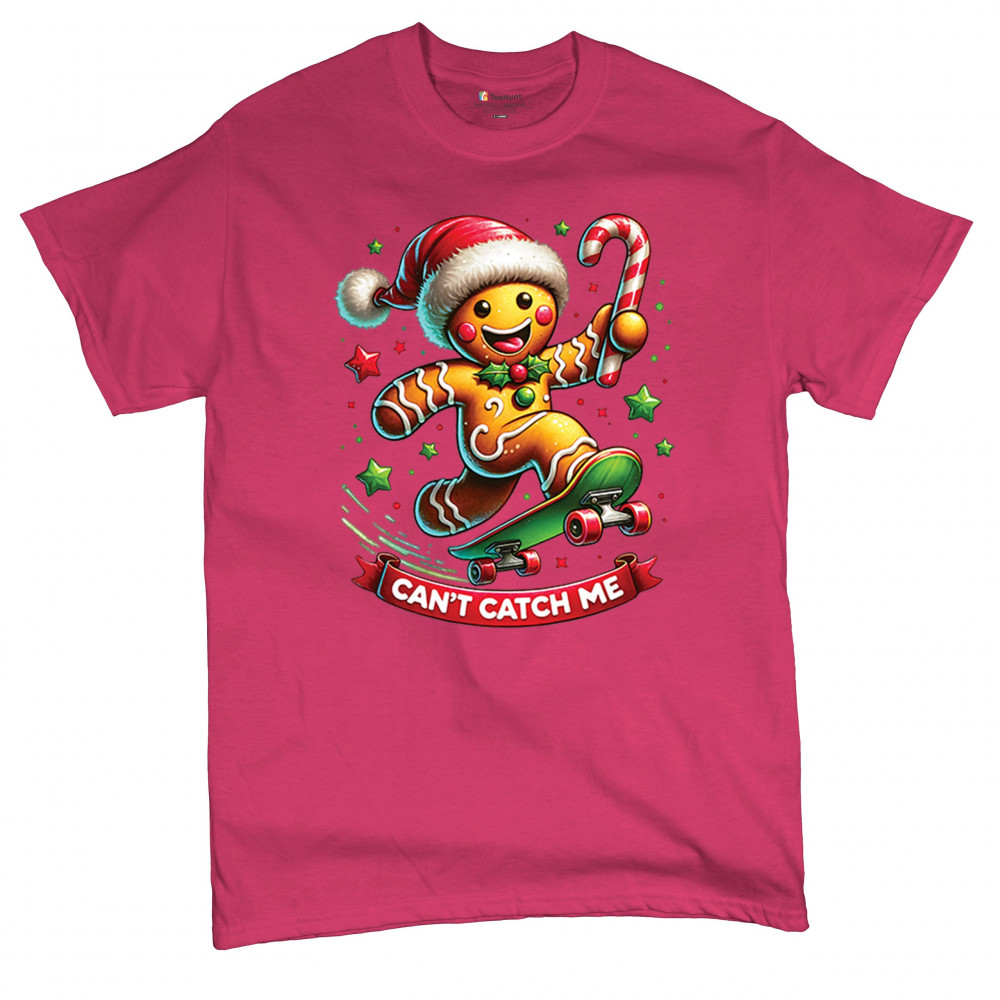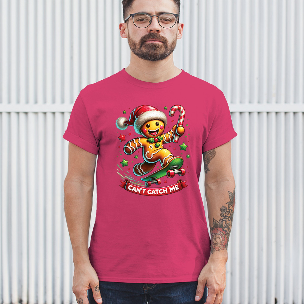 A fun Christmas design featuring a gingerbread character on a skateboard, candy cane in hand, and bright festive colors. Perfect for holiday party outfits, family gatherings, Christmas photos, festive humor fans, stocking stuffer gifting, winter celebrations, and anyone who loves playful seasonal graphics with cheerful personality.