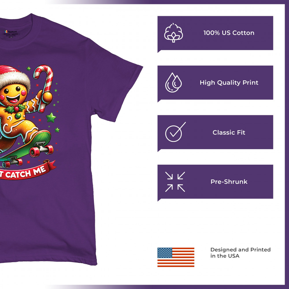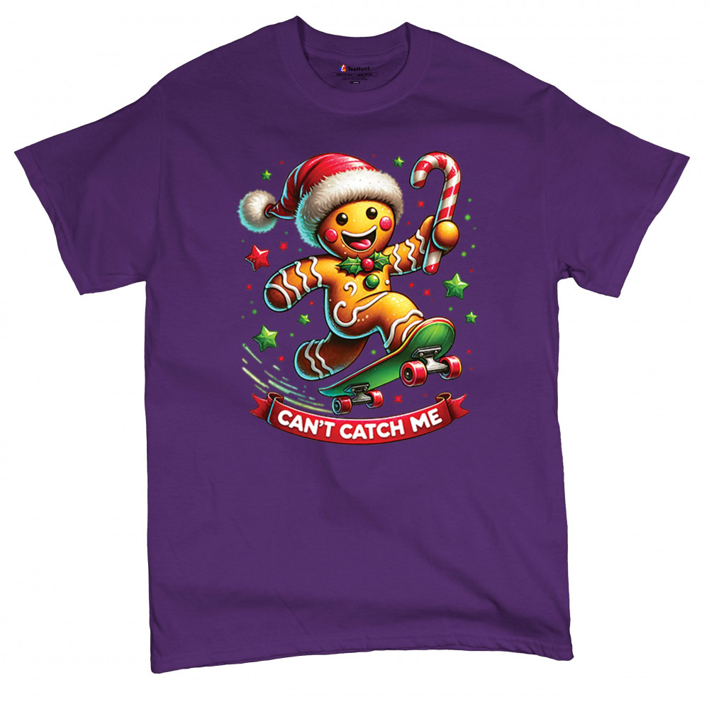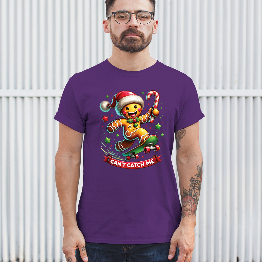 A fun Christmas design featuring a gingerbread character on a skateboard, candy cane in hand, and bright festive colors. Perfect for holiday party outfits, family gatherings, Christmas photos, festive humor fans, stocking stuffer gifting, winter celebrations, and anyone who loves playful seasonal graphics with cheerful personality.