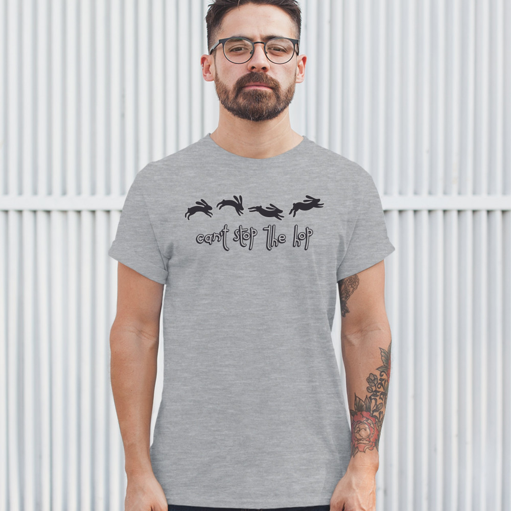 CAN'T STOP THE HOP t-shirt happy easter funny hopping rabbits men's tee gray