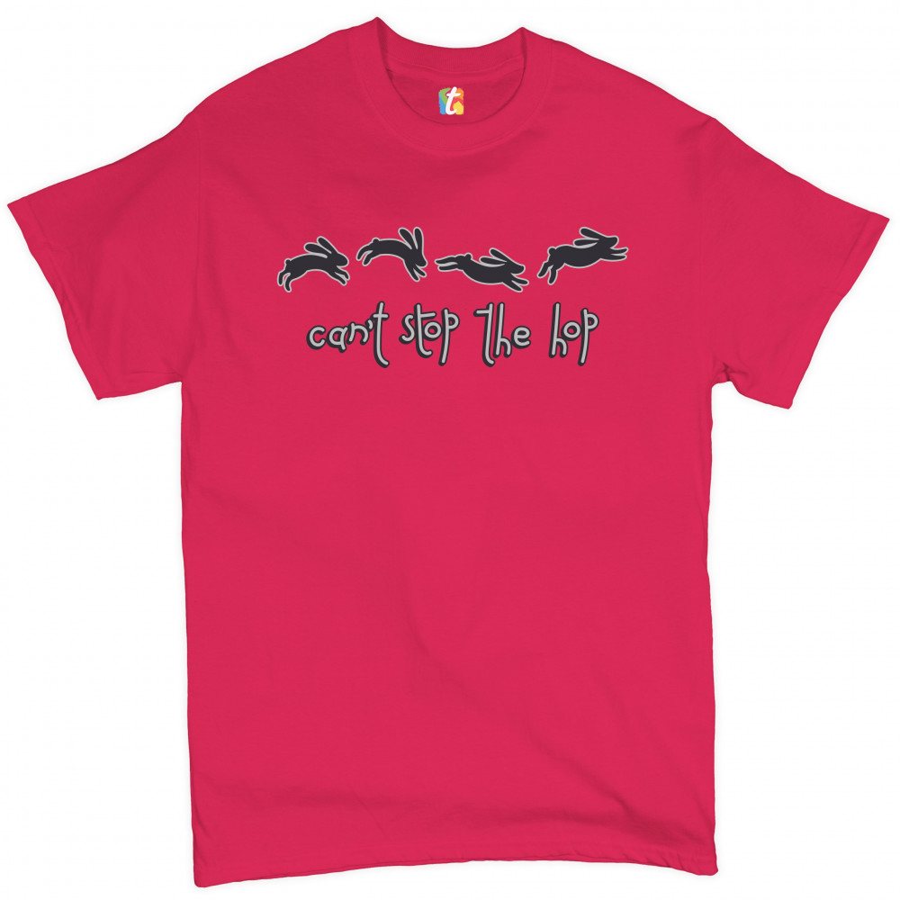 CAN'T STOP THE HOP t-shirt happy easter funny hopping rabbits men's tee hot pink
