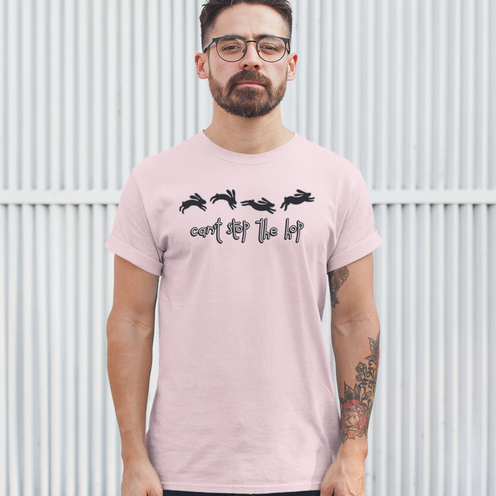 CAN'T STOP THE HOP t-shirt happy easter funny hopping rabbits men's tee light pink
