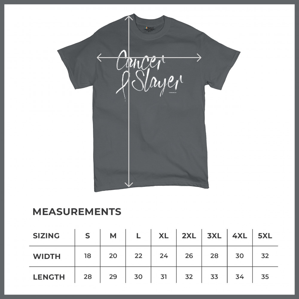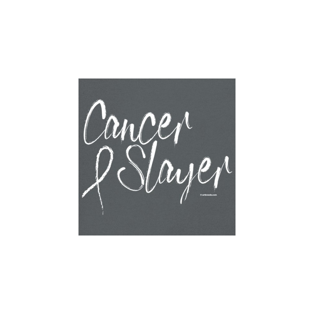 A print featuring a ribbon and saying "Cancer Slayer". Wear it to spread awareness abouth the disease and support a person you know who is battling it at the moment.