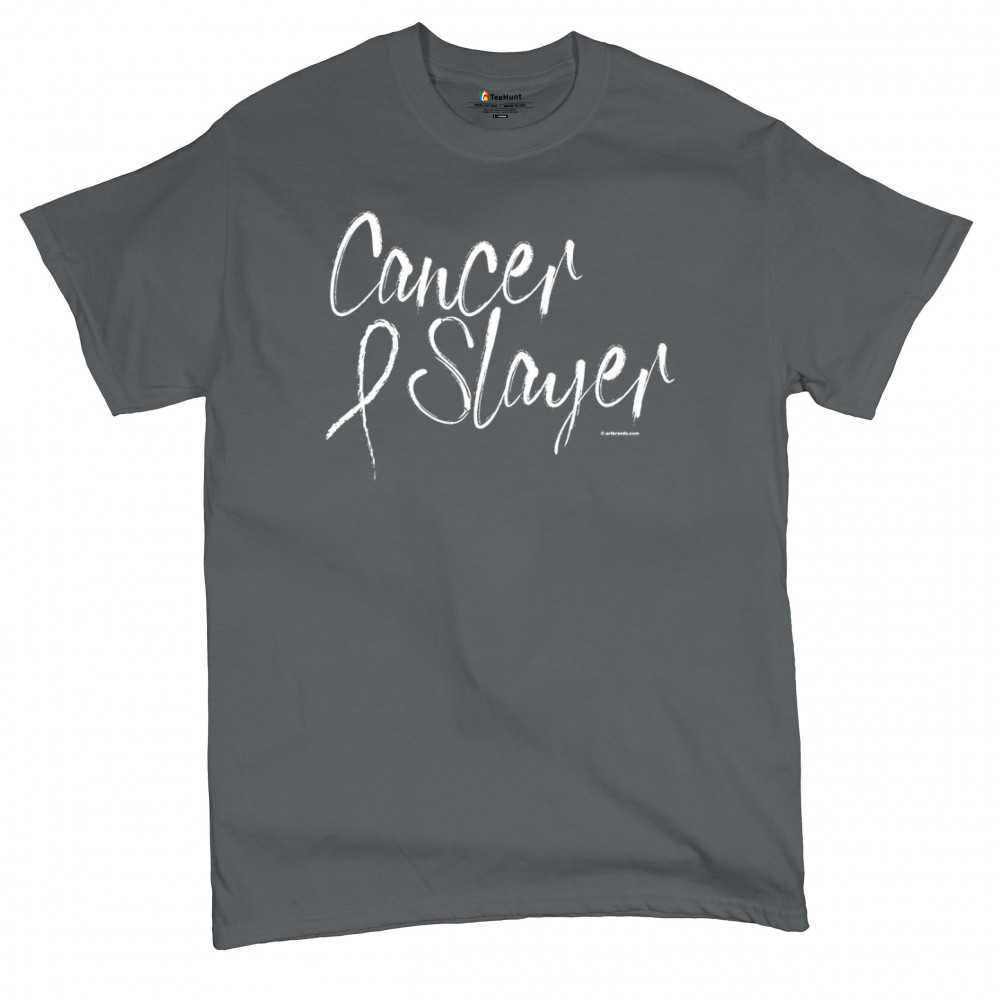 CANCER SLAYER t-shirt breast cancer awareness ribbon hope healing men's tee charcoal